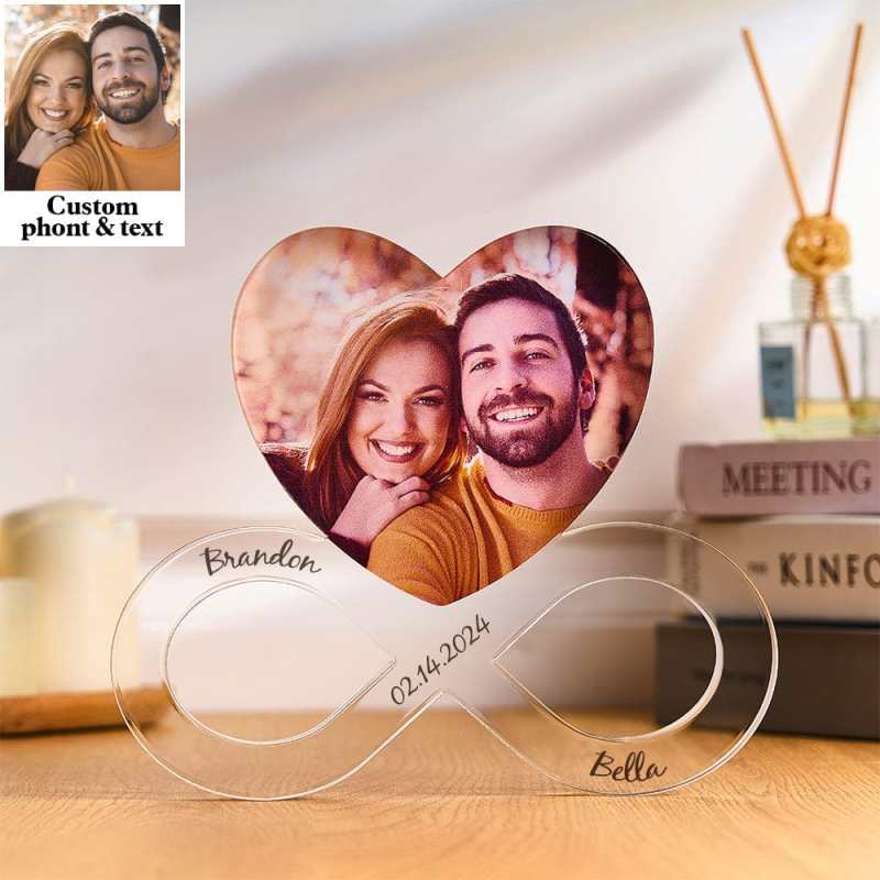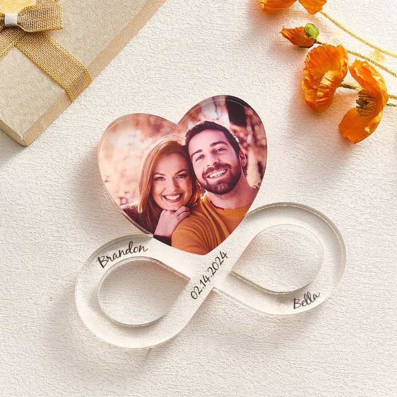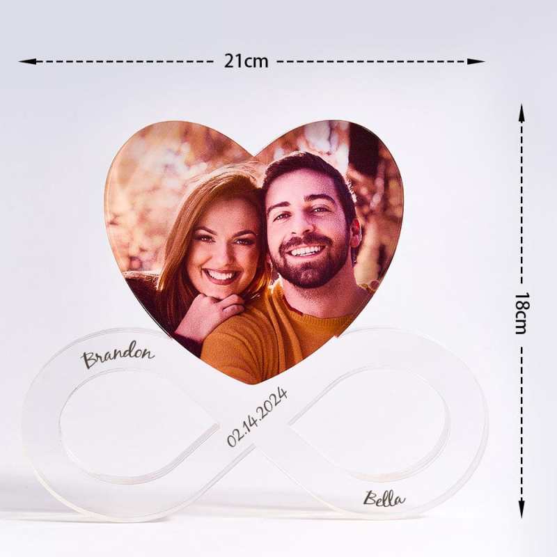 Celebrate your love with our Custom Photo Infinity Heart Acrylic Decoration, the perfect personalized gift for couples. This elegant acrylic piece features an infinity heart design, symbolizing eternal love and connection. Customize it with your favorite photo, making it a unique keepsake for anniversaries, weddings, or any special occasion.