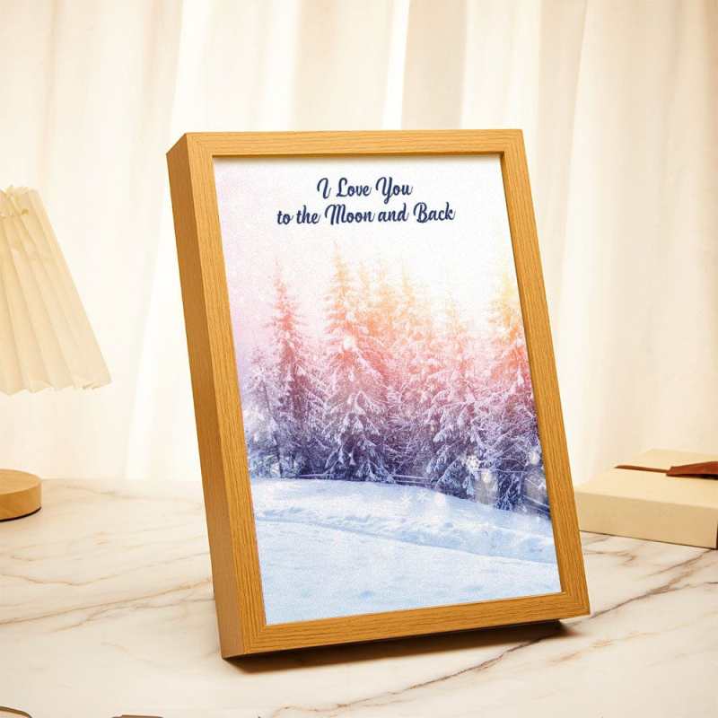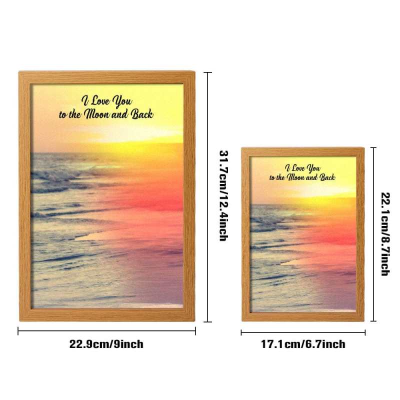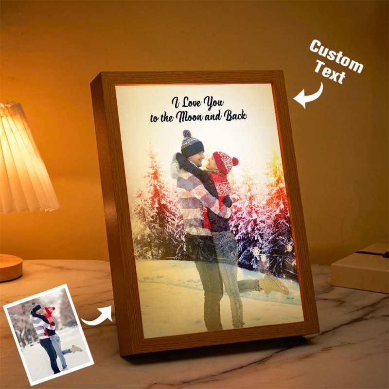 Bring a unique and personal touch to your home with this Custom Photo Lamp. The wooden frame holds a high-quality photo of your choosing, and when the light is switched on, the text of your choice is illuminated. When the light is off, the photo frame doubles as a decoration. With its customizable features, this lamp is an ideal way to add a personal touch to your home.