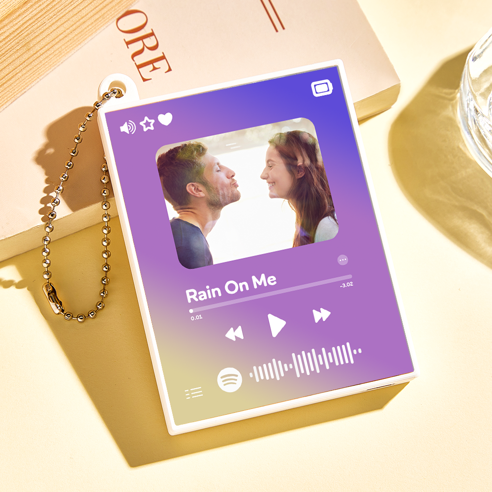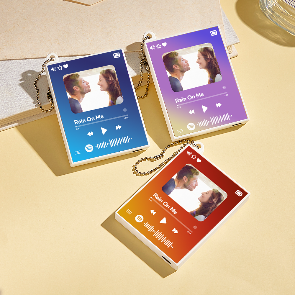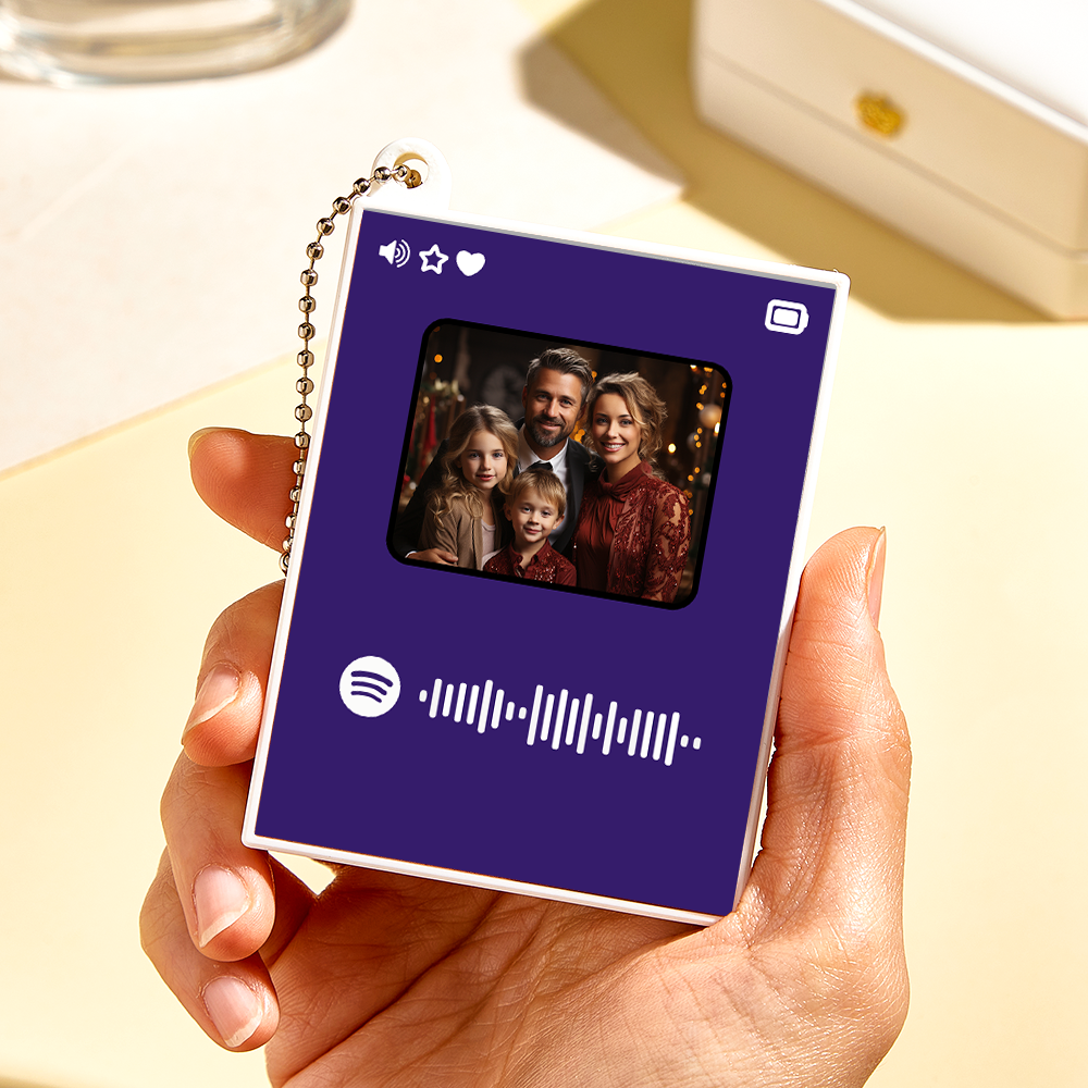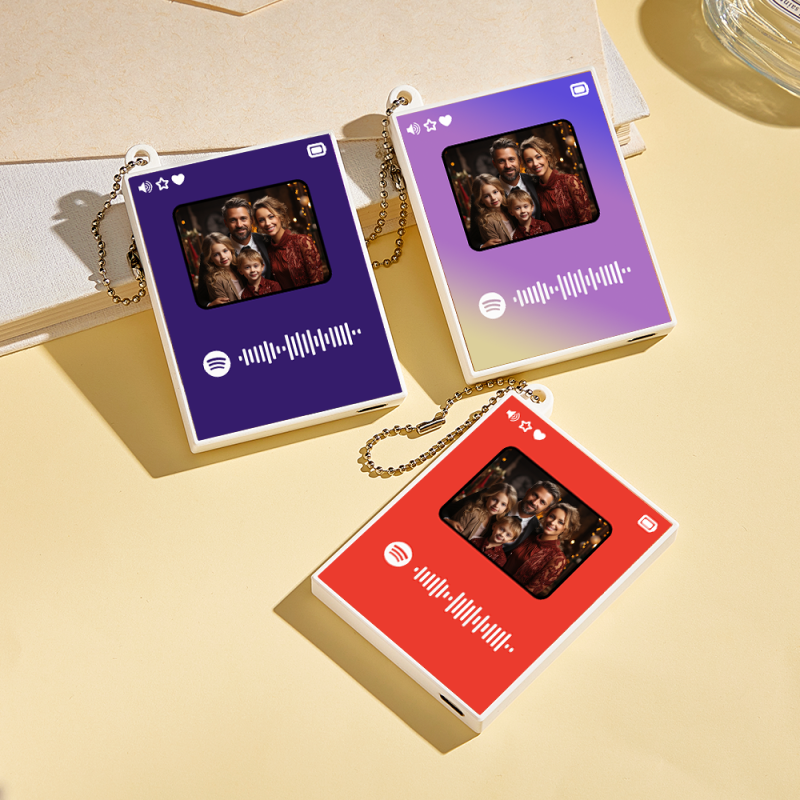 Carry your favorite memories and melodies wherever you go! This personalized keychain combines a custom photo with a mini music player, letting you store and play your chosen song anytime. Just upload your picture and pick a track that means the most to you-whether it's a love song, a family tune, or a special moment's soundtrack.