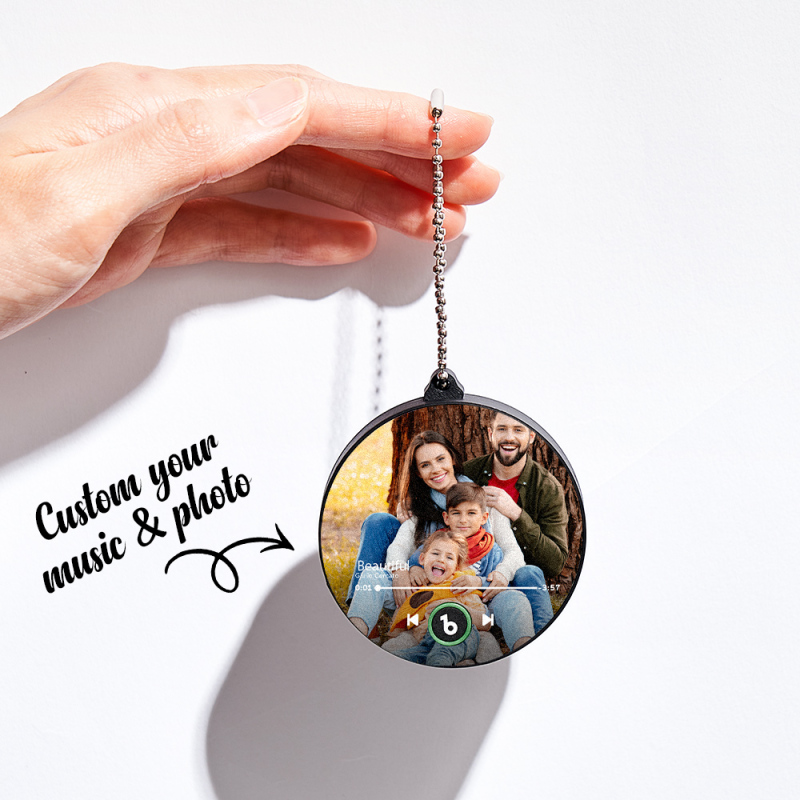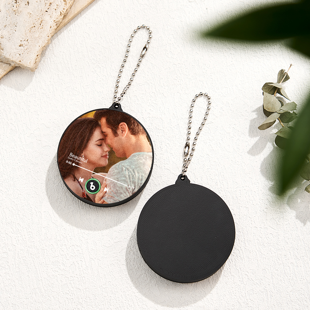 Carry your memories and music everywhere with this Personalized Photo Music Keychain Music Box Bag Charm. Measuring 6*6 cm, it’s lightweight and portable-perfect to hang on your bag, keys, or use as a desk companion.