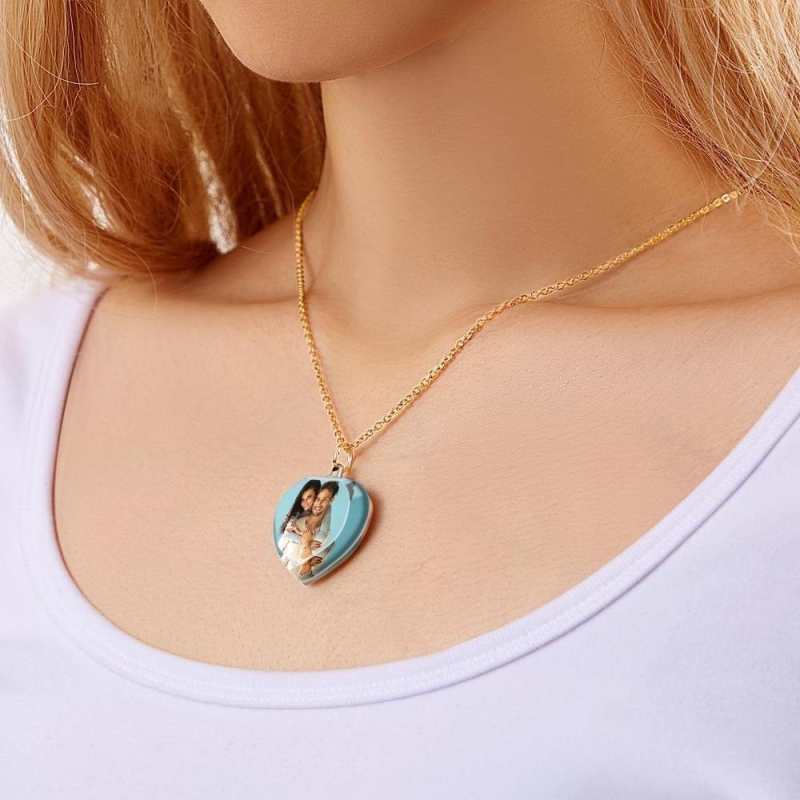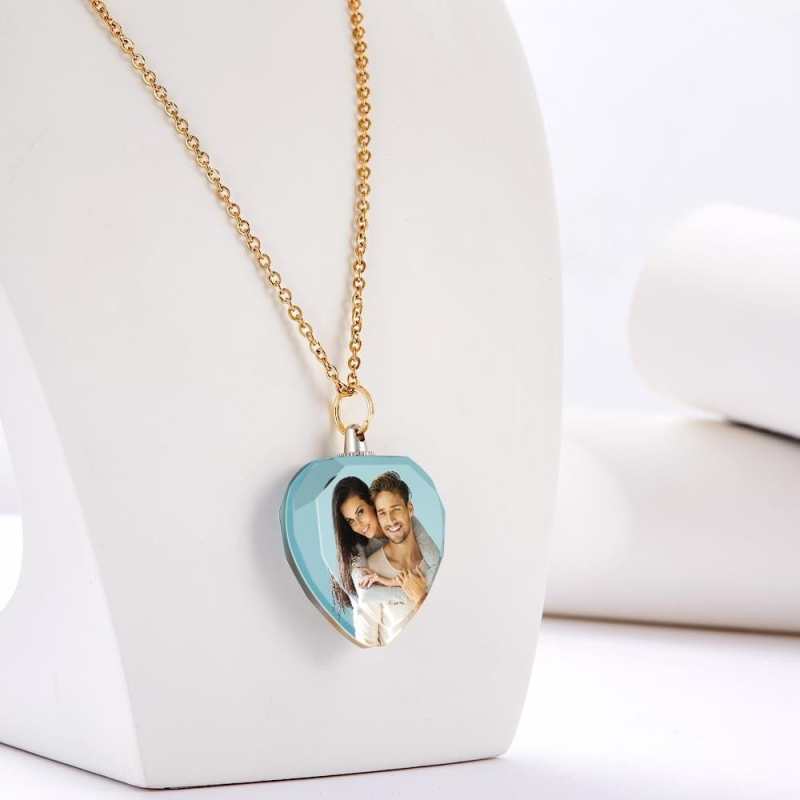Custom Photo Necklace Personalized Charm Heart Shaped Crystal