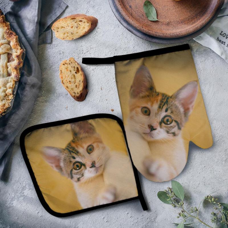 Photo Oven Mitts & Pot Holders Set Baking Set Kitchen Gift For Cat Lover