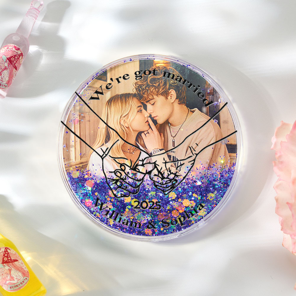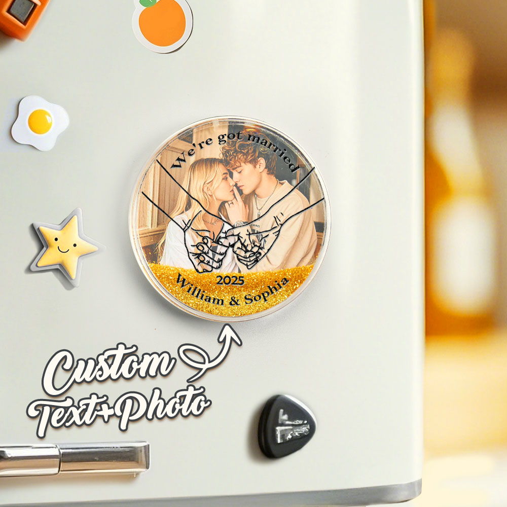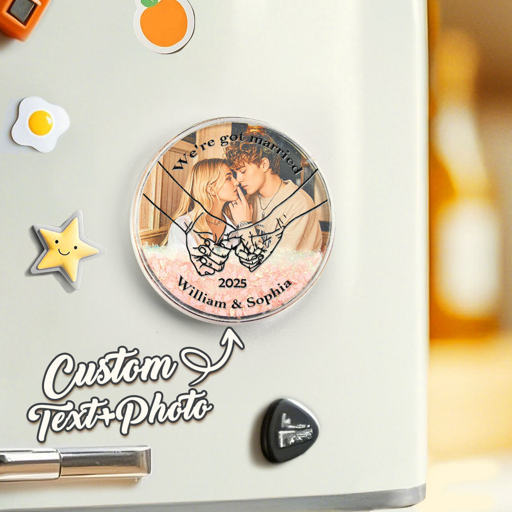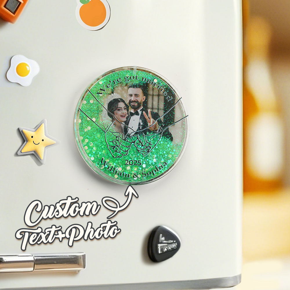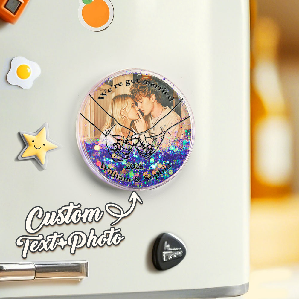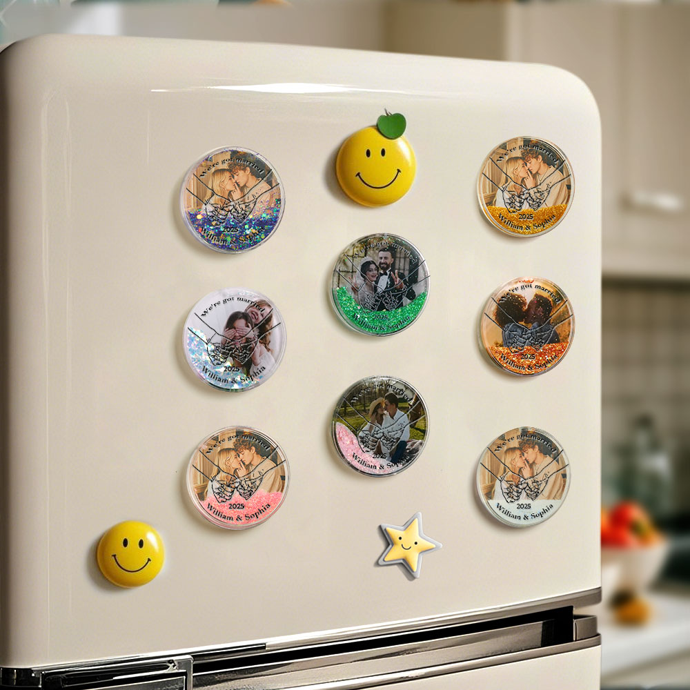 Custom Photo Round Quicksand Fridge Magnet Personalized Refrigerator Magnet Wedding Gifts