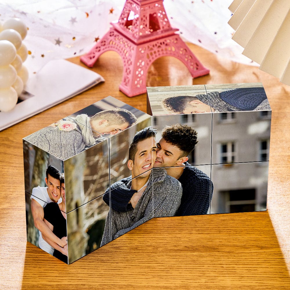Custom Photo Rubic's Cube Wooden Cube Heart Shape Multiphoto Cube Gifts Male Couple