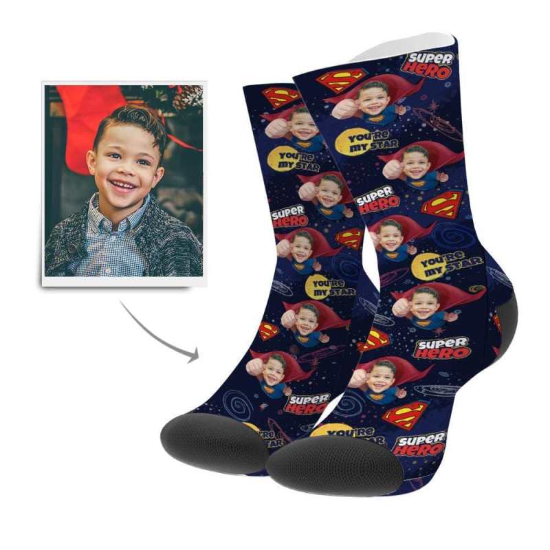 Custom Photo Socks Superhero Style Face Mash Socks with Text