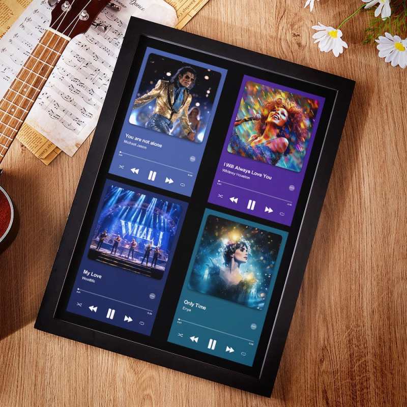 This is a creative DIY music home gift. You can choose an album cover or upload your own photo if you want. There are corresponding buttons on the back of the photo frame, you can connect the data cable and upload your favorite music by yourself. In this way, you will get an exclusive gift of music, and press the corresponding button to play your favorite music. This music photo frame is made of high-quality material and printed in bright colors, making it a good choice for home decoration/anniversary gift/confession gift!