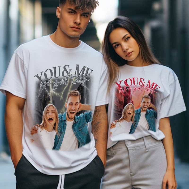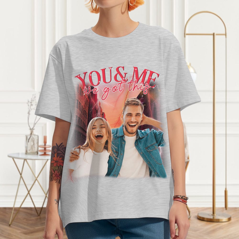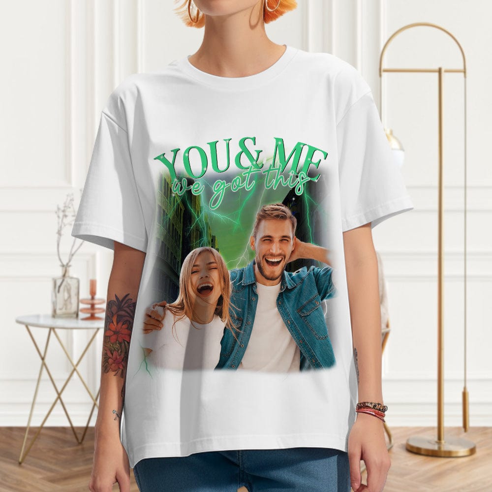 Custom Photo Vintage Tee Personalized Couple Name T-shirt