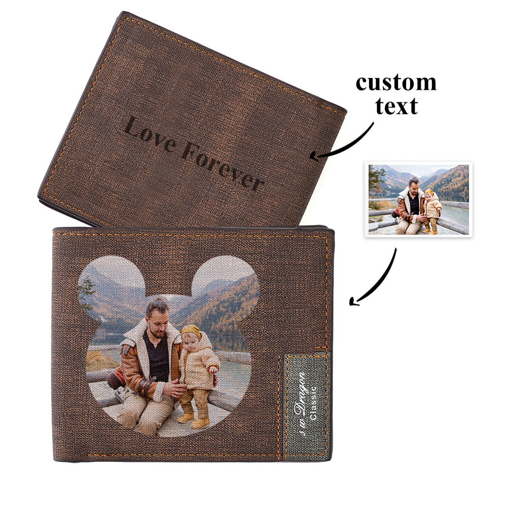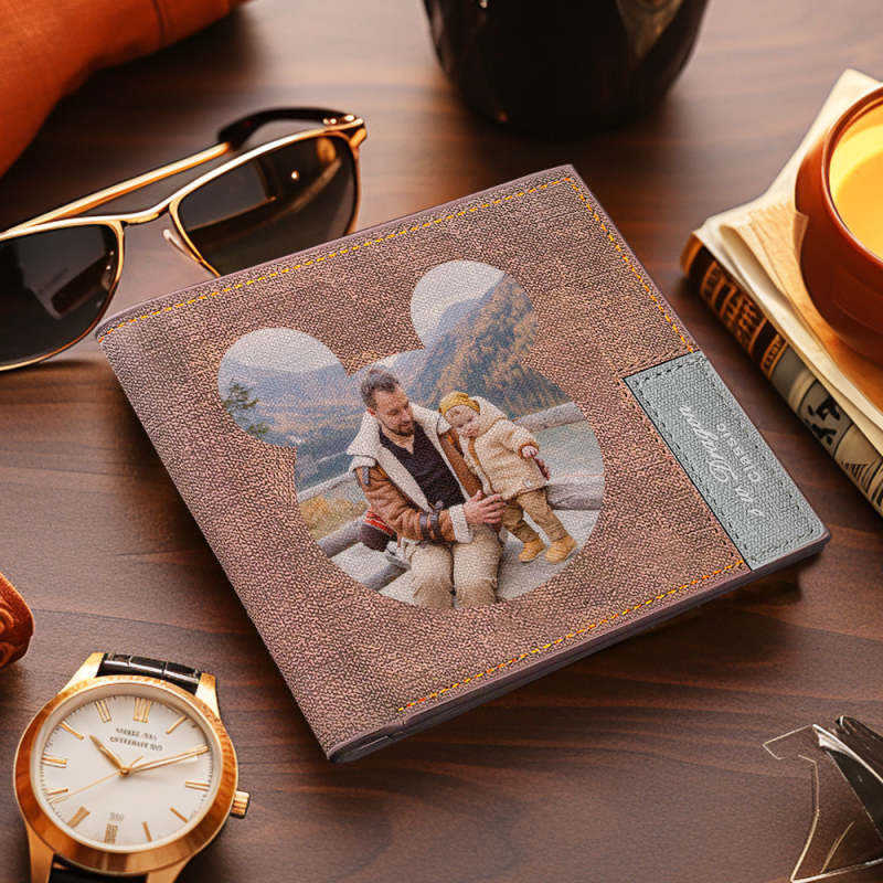 Bring your cherished memories to life with this custom photo wallet! It features a men's bifold short wallet with a beautiful brown background, color printing, and a bear frame sure to make you smile. It's time to switch up your everyday carry with a personalized, stylish touch.