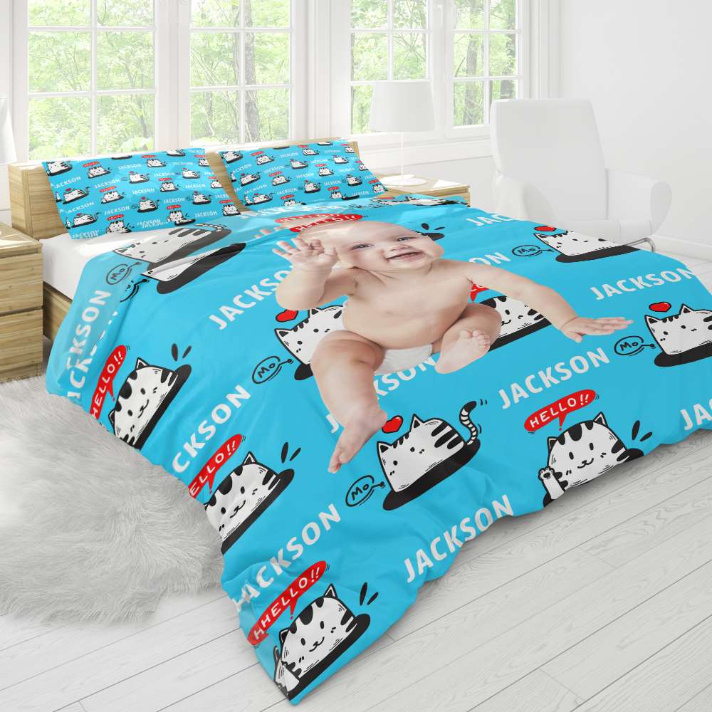 Personalized Pillow Case Bedding Set Gift For Children - Light Blue