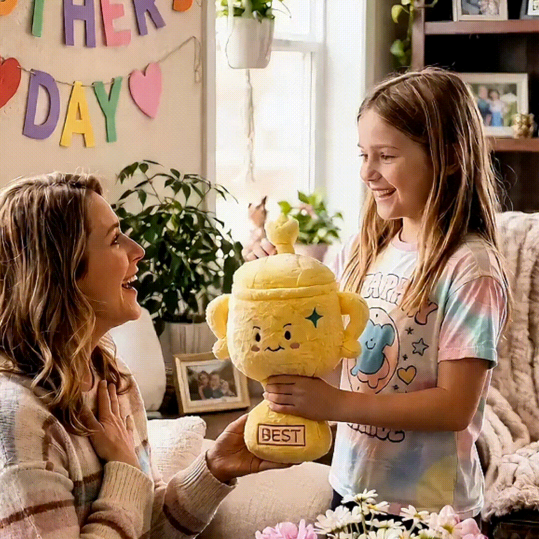 This custom plush trophy for mom turns a classic award into something soft, warm, and deeply personal. Gently pull up the top to reveal a hidden message inside, customized with her name and your heartfelt words.