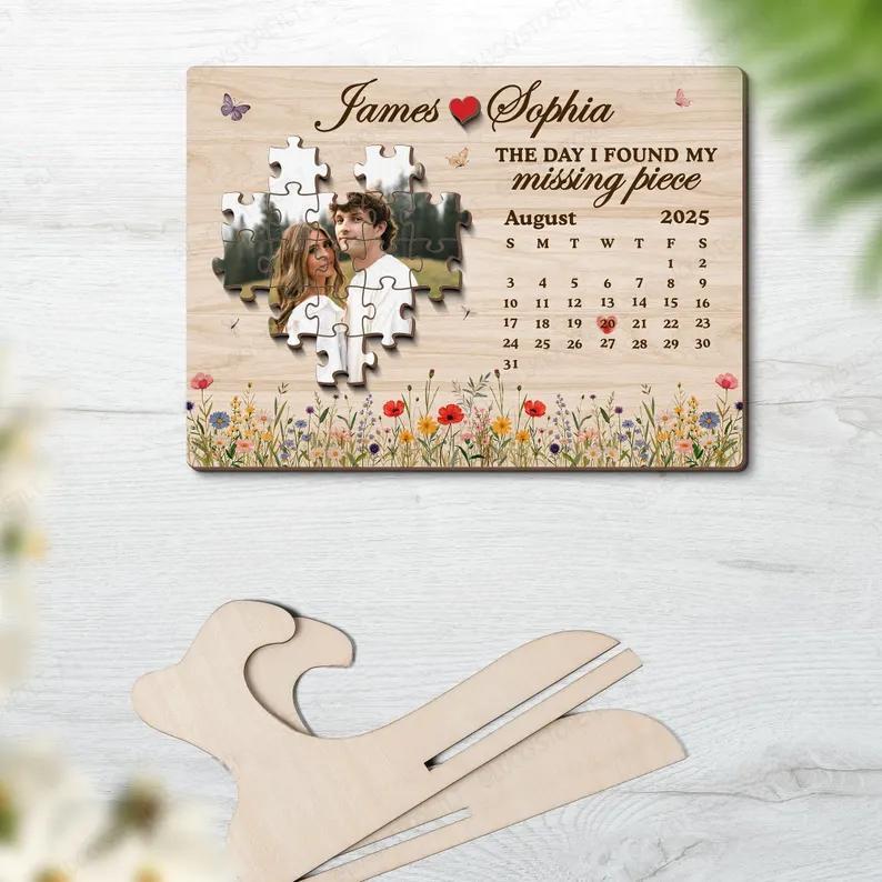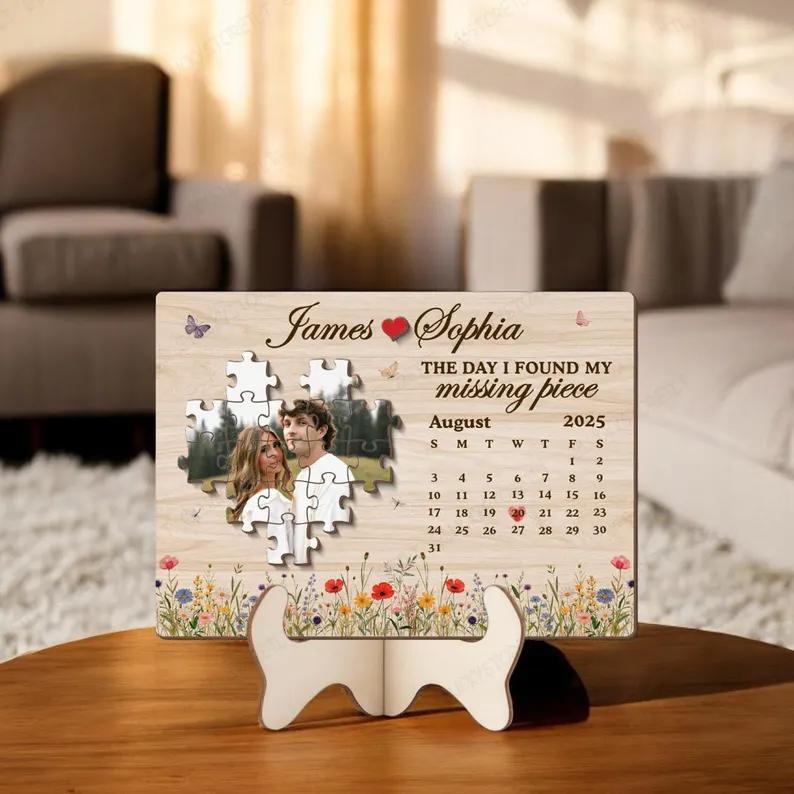 Custom Puzzle Couple The Day I Found My Missing Piece with Custom Date Plaque, Valentine Sign, Anniversary Gift For Her, Puzzle Couple Name