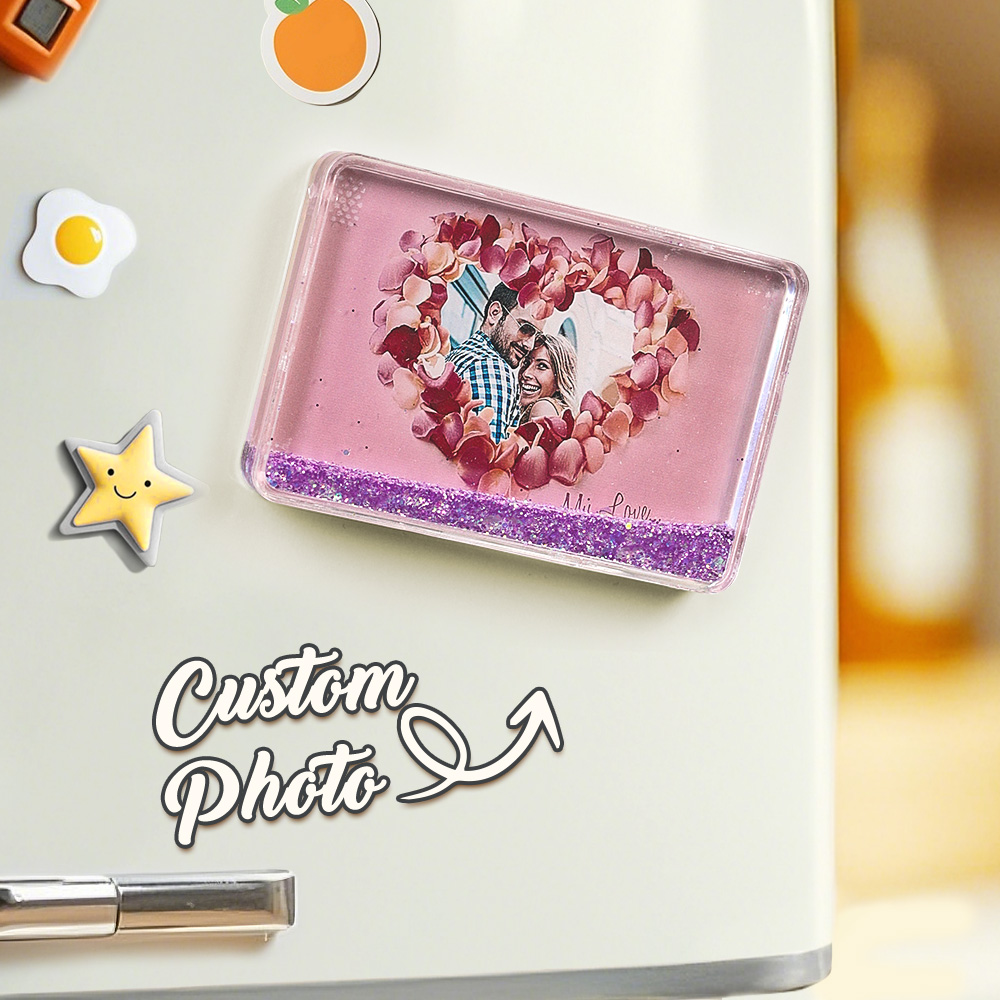Custom Quicksand Fridge Magnet Personalized Photo Refrigerator Magnet Home Decoration for Lover