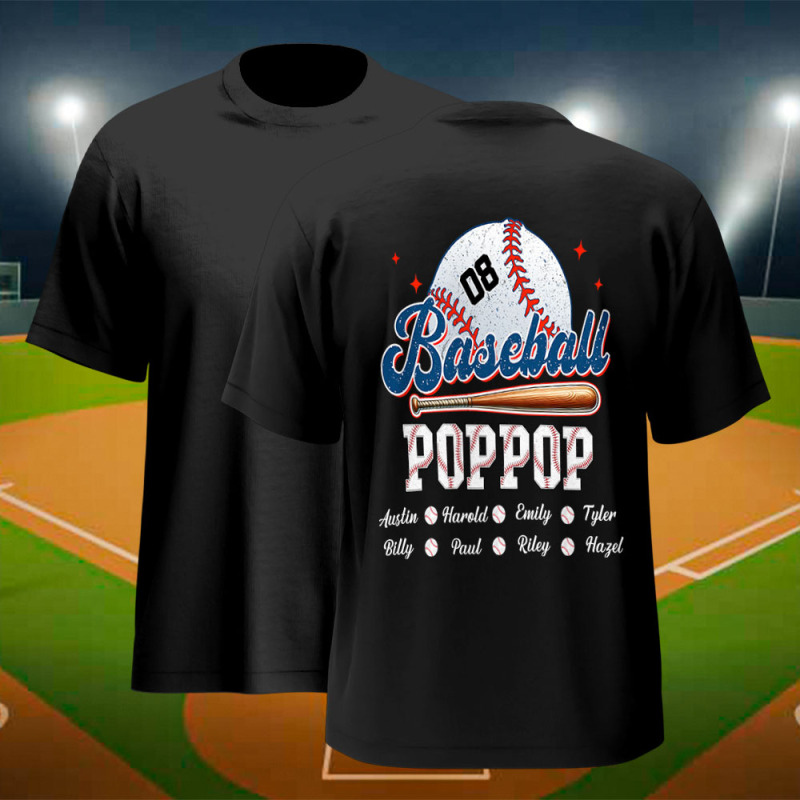 Custom Retro Baseball Dad & Kids Shirt Personalized Name T-Shirt Gift for Dad