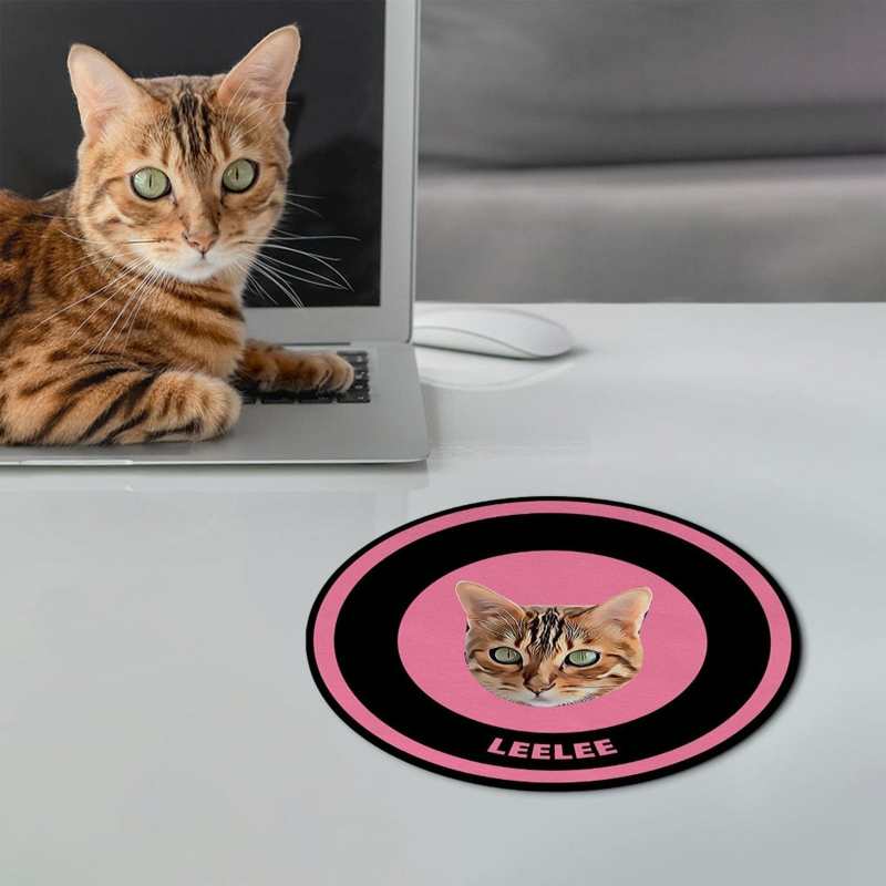 • Introducing our Custom Round Mouse Pad, the perfect personalized gift for pet lovers everywhere! Keep your furry friend close as you work or play with this adorable and functional accessory.