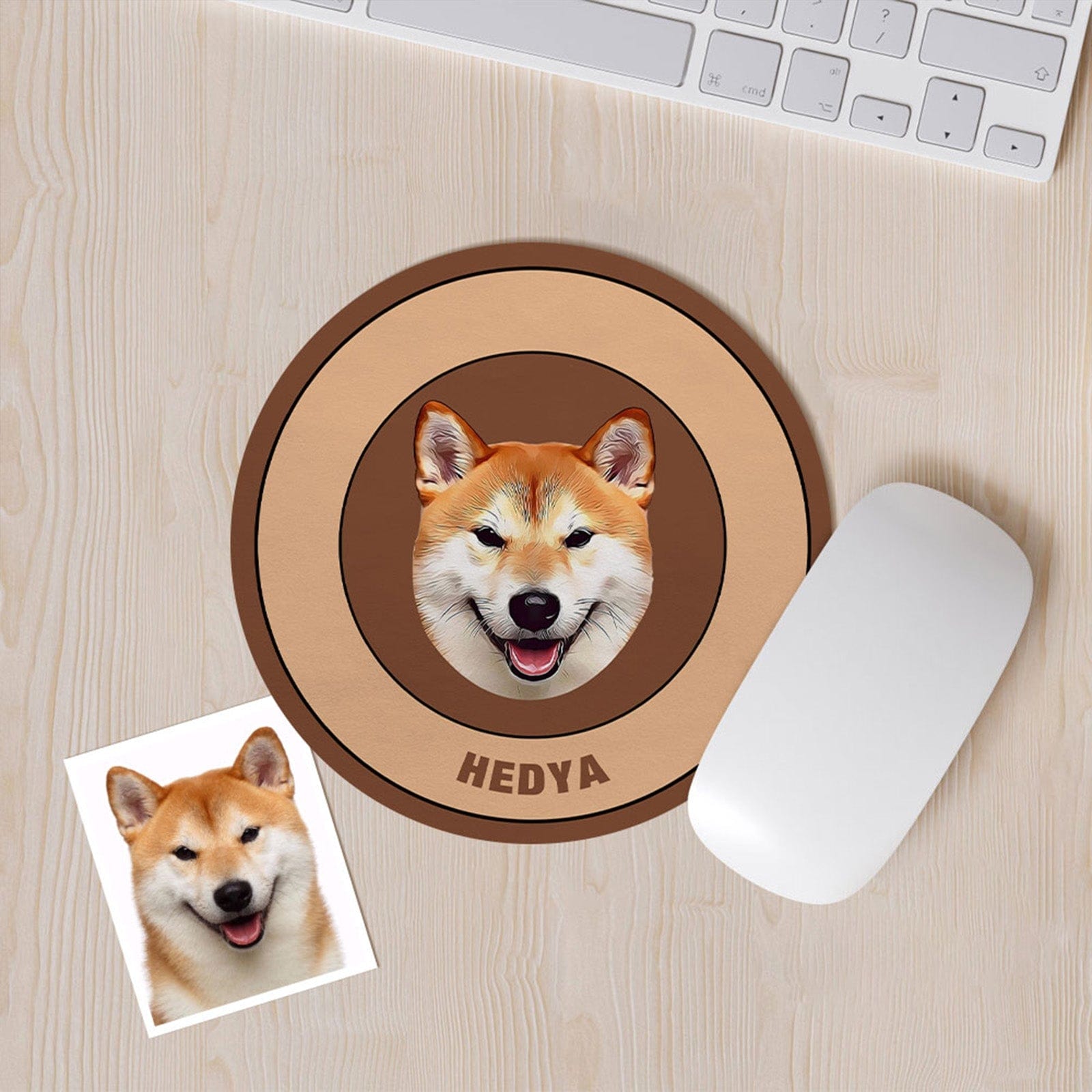 • Introducing our Custom Round Mouse Pad, the perfect personalized gift for pet lovers everywhere! Keep your furry friend close as you work or play with this adorable and functional accessory.