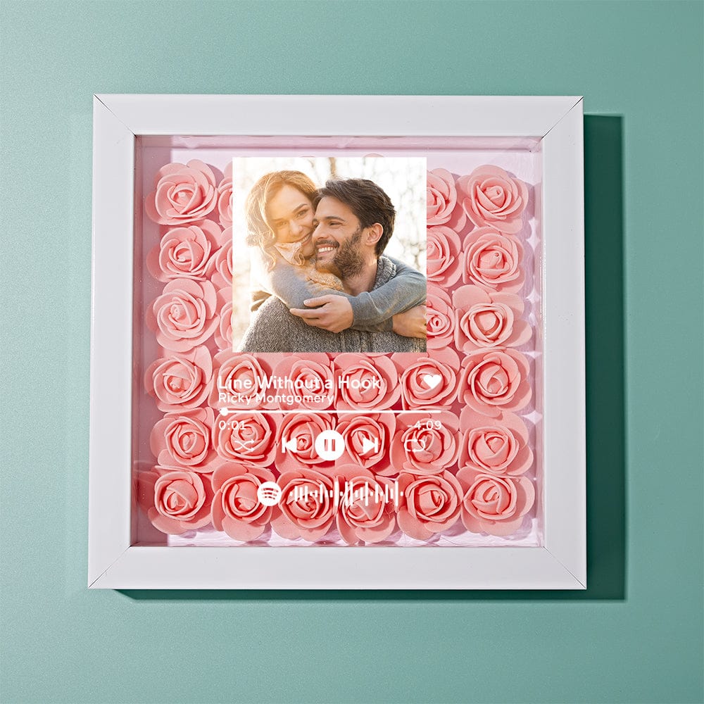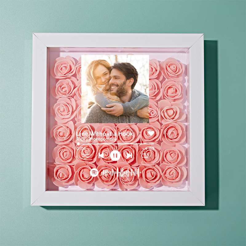 Surprise your loved one with this beautiful, personalized flower shadow box. You can customize it with the picture of you and mom, favorite music and scannable music code to keep your special memories. Show your love with our beautiful roses with varied styles and colors available.