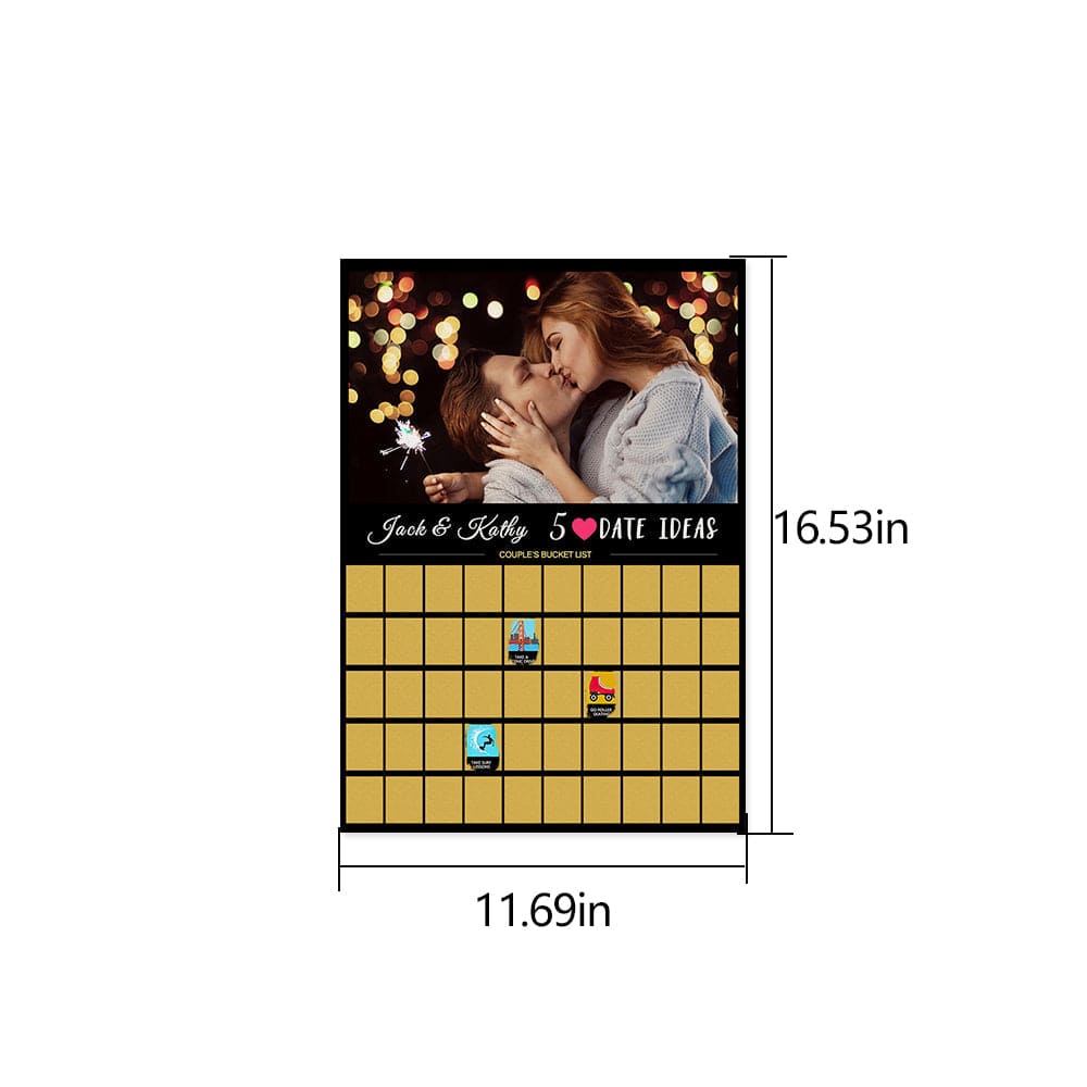 Our poster is full of fun, romantic, and adventurous couple activities. We created unique, colorful illustrations for every date idea on our poster. Remove the foil and decide your date ideas! Our posters can be personalized with photos and names. This makes it a perfect boyfriend gift!