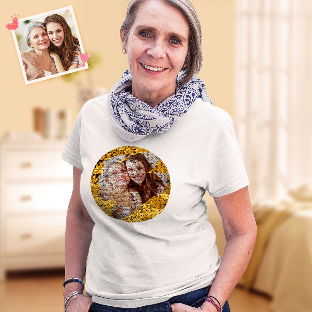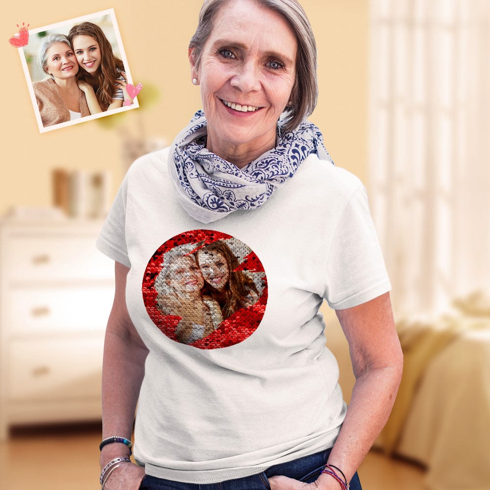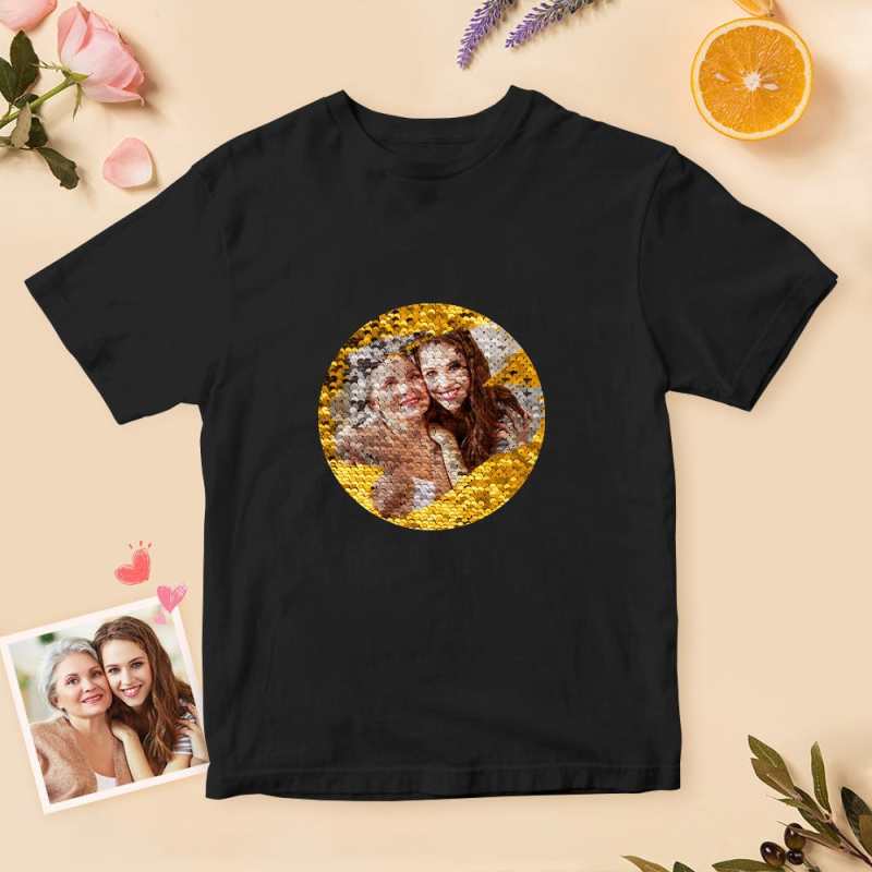 Custom Sequin T-Shirt Custom Picture T-shirts Best Mother's Day Gift