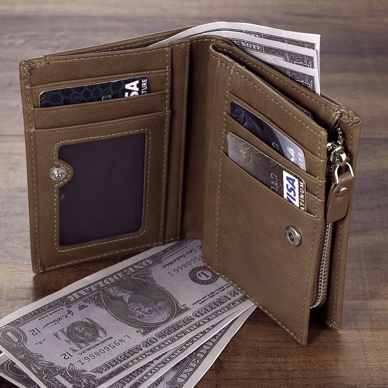 • Internal Details:6 slots for cards, 1 clear slot for cards,1 slot for cash, 4 hidden slots for cards, 1 zipper slot for coins