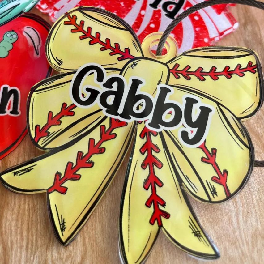 Whether it's game day, dance class, or travel time, this personalized acrylic bag tag makes it easy to spot her bag - and show off her sporty pride with style! 🎉