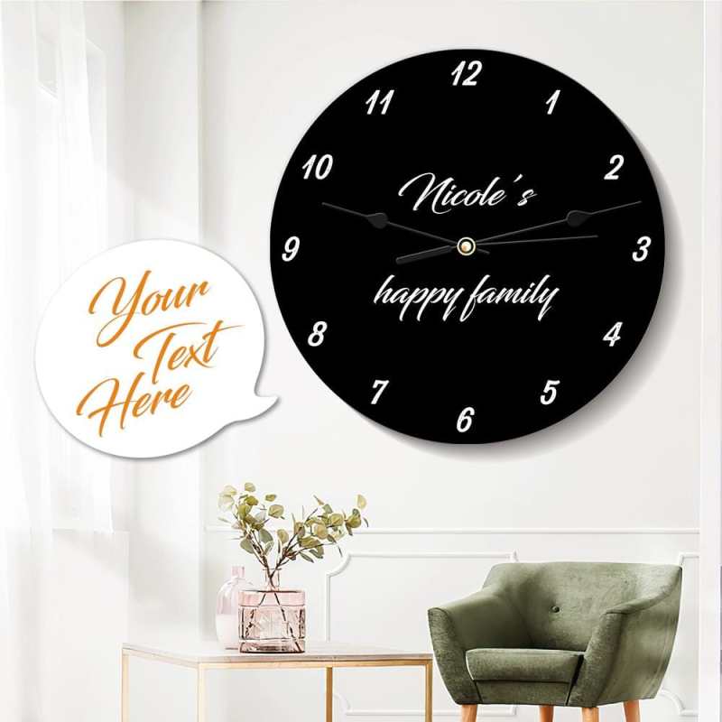 Custom Wall Clock with Text Round Black Clock 25*25cm