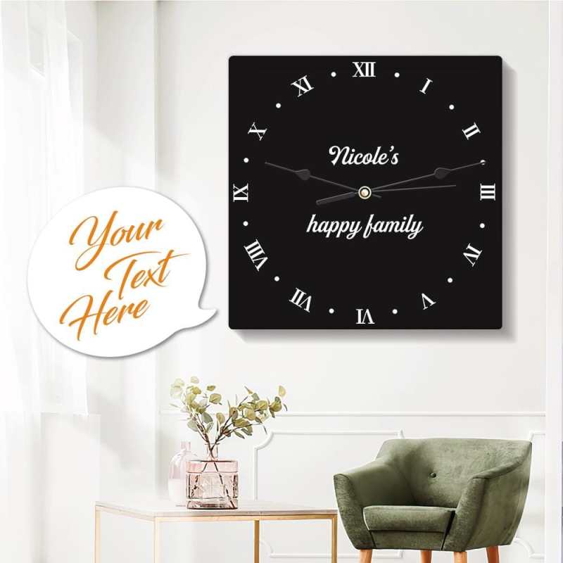 Custom Wall Clock Custom Photo Clock with Text Square Roman Numerals Black 7.87*7.87in