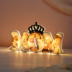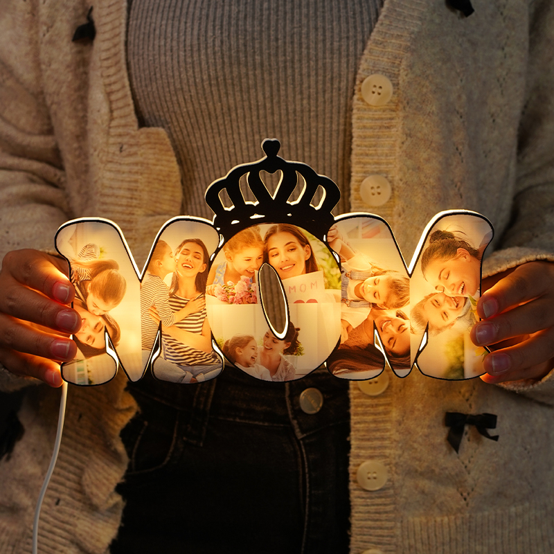 A creative night light in the shape of the letter "MOM", with an exquisite crown inlaid on the letter O, symbolizing that mom is always the queen of the family! The double-layer acrylic board design allows you to freely insert 6 precious photos to record parent-child smiles, family warmth, or mom's most beautiful appearance, so that every ray of light carries exclusive memories.