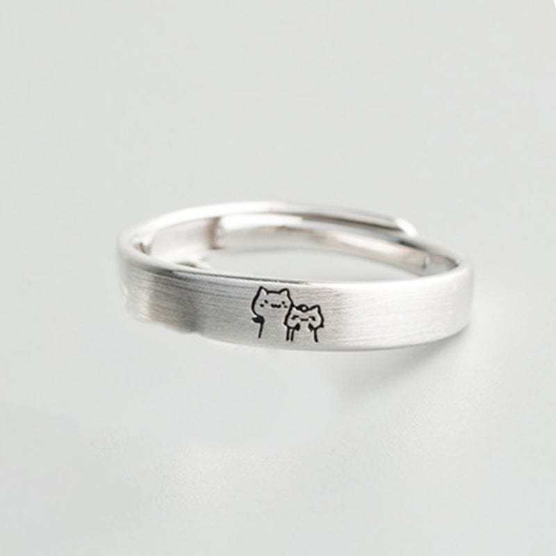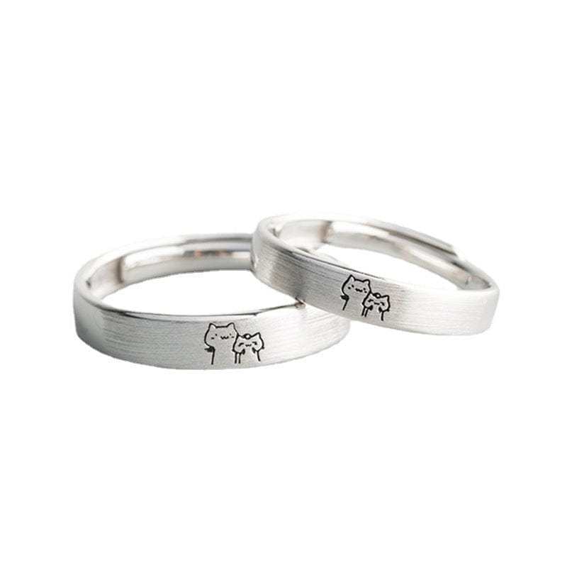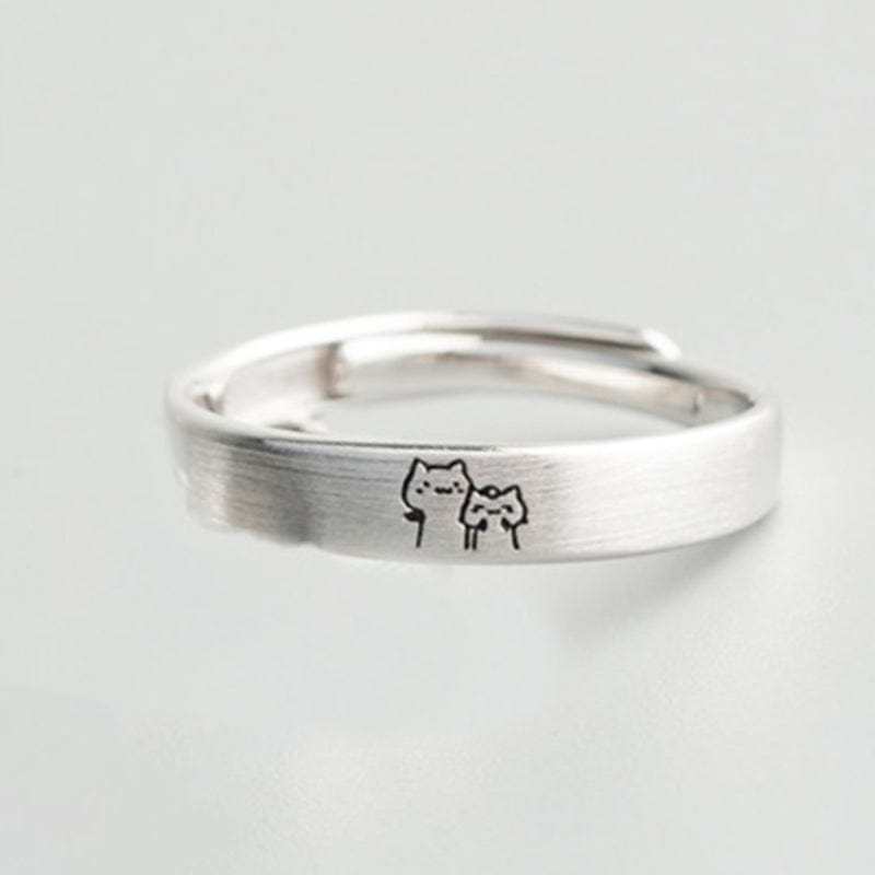 Cute Cat Matching Ring Adjustable Ring Animal Couple Jewelry Gift