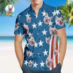 Dog's Face Men's Hawaiian Shirts 4th of July American Flag Patriotic Independence Day Hawaiian Shirts