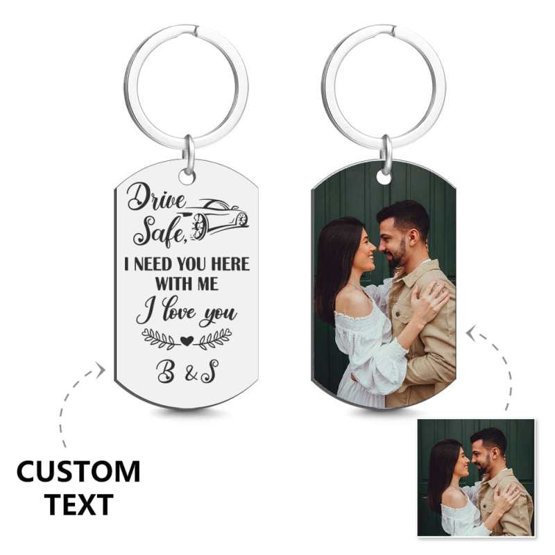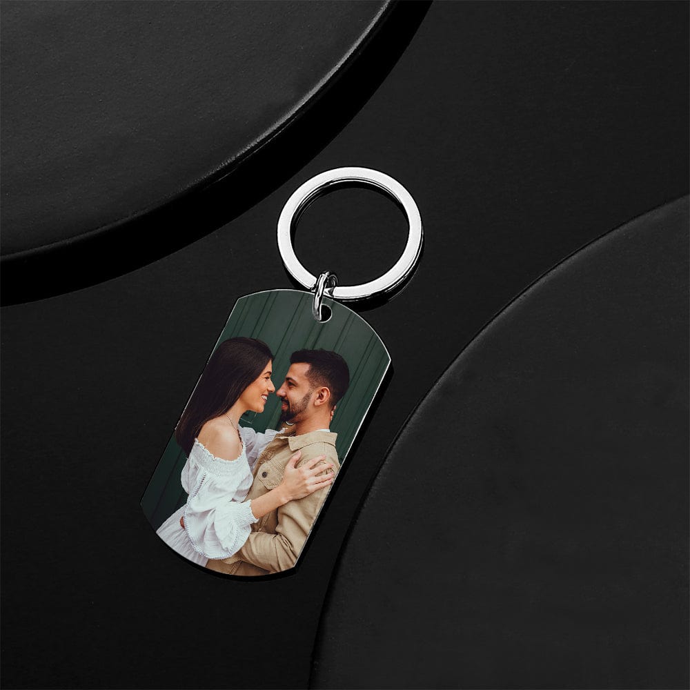 Photo Engraved Tag Key Chain with Engraving Black for Couple.