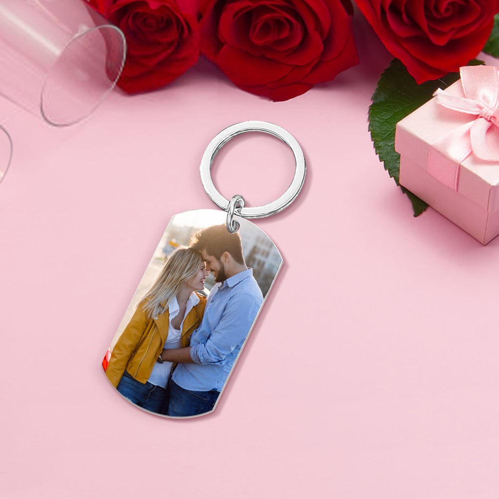 Photo Engraved Tag Key Chain with Engraving Black for Couple.
