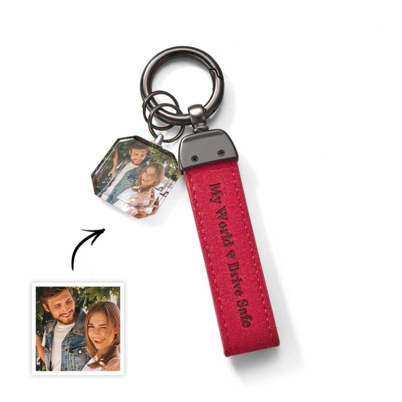 Drive Safe My Love Personalized Laser Engraved Leather Crystal Photo KeyChain