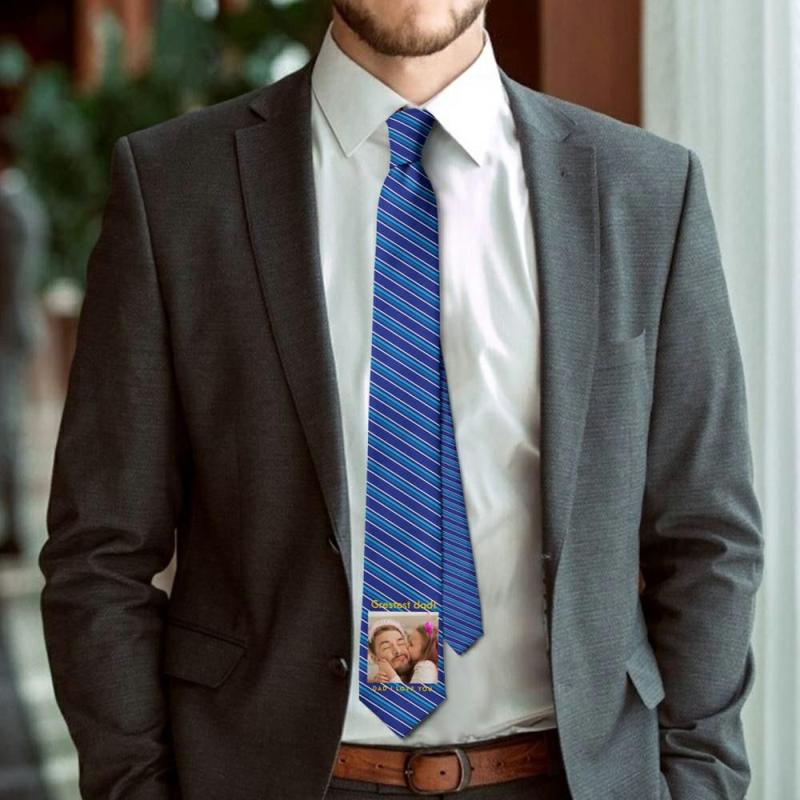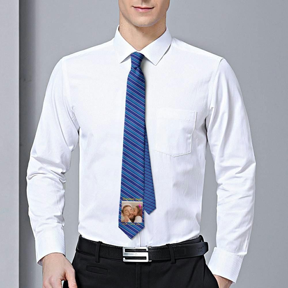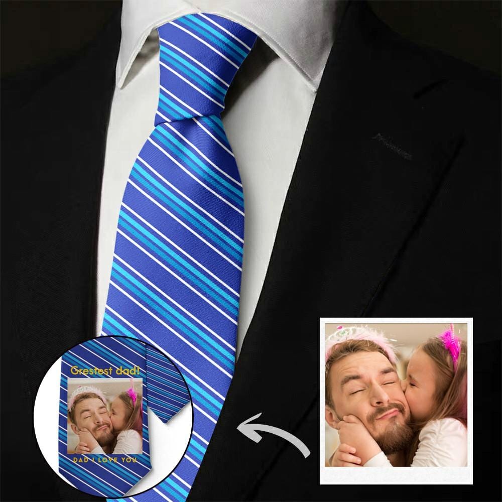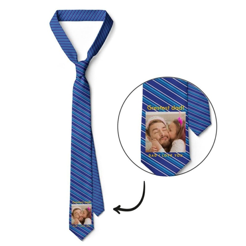 Father's Day Ties Father-in-law Gift Picture Tie with Blue Stripes - "I Love You Dad"