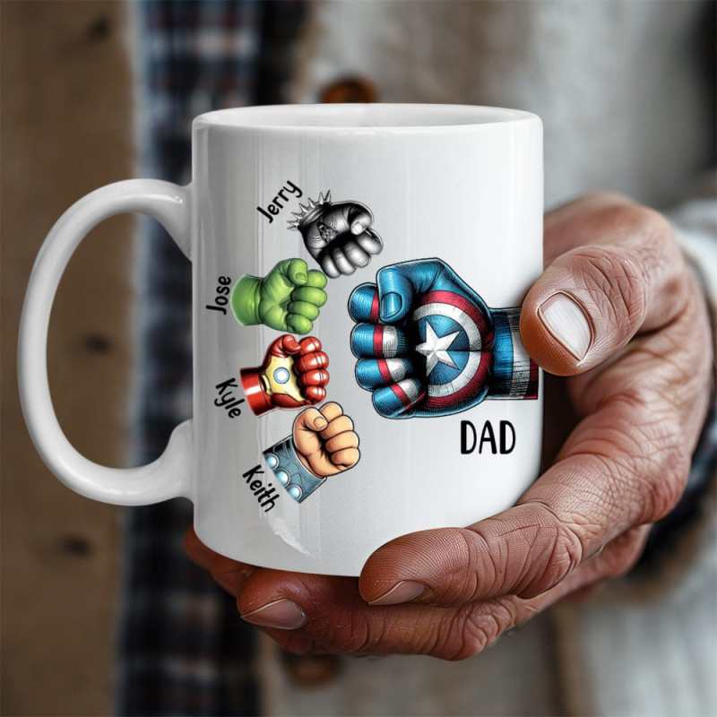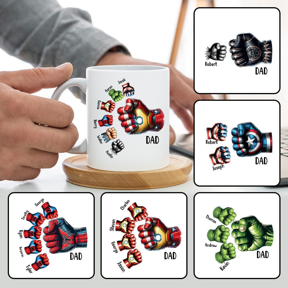 Father's Day Gifts Custom Names Personalized Hero Fists Printed Mug Best Dad Ever