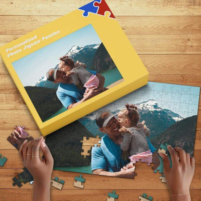 Custom photo puzzles from 35pcs to 1000pcs for kids and adults. Make a personalized photo puzzle and give it to your loved one. Enjoy the memory again and again.