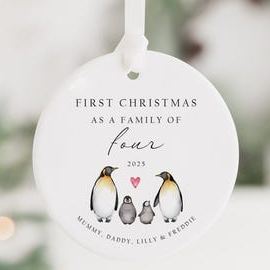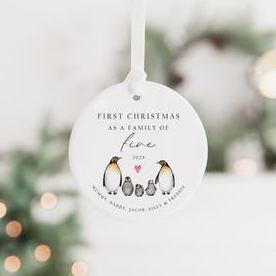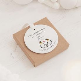 Personalised First Christmas as a Family Decoration | Keepsake Christmas Bauble Gift Ceramic Ornament | Baby's First Christmas Decoration