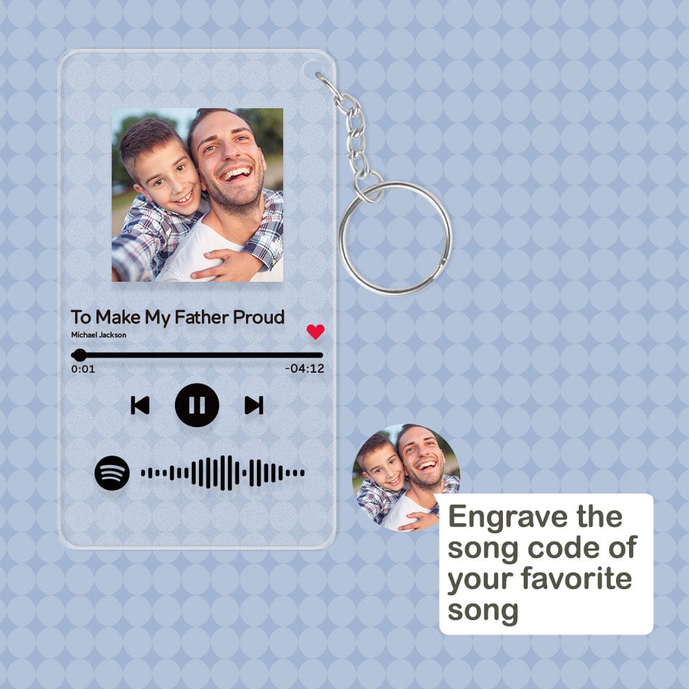 Custom the Spotify code keychain, choose any song title, artist name, and favorite photos you want, all can be printed on the acrylic plaque, and you can generate a unique Spotify code.