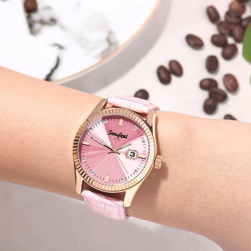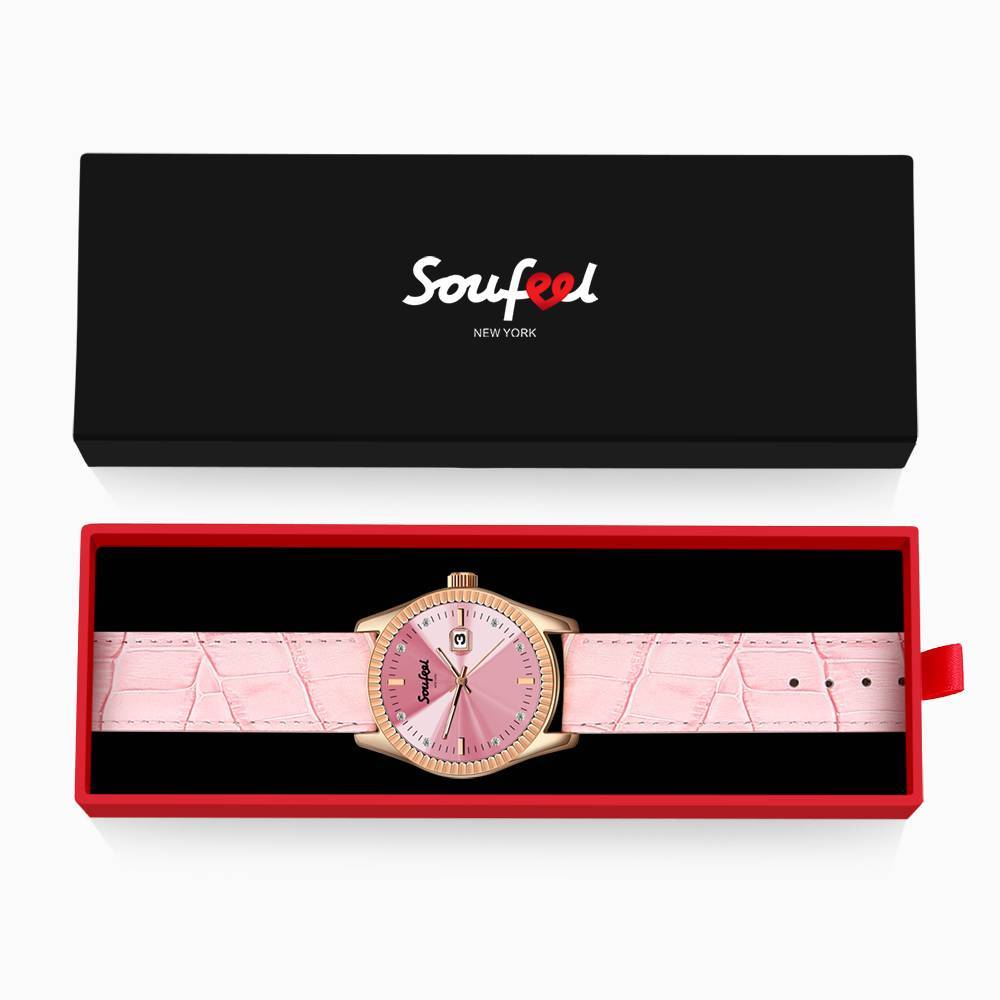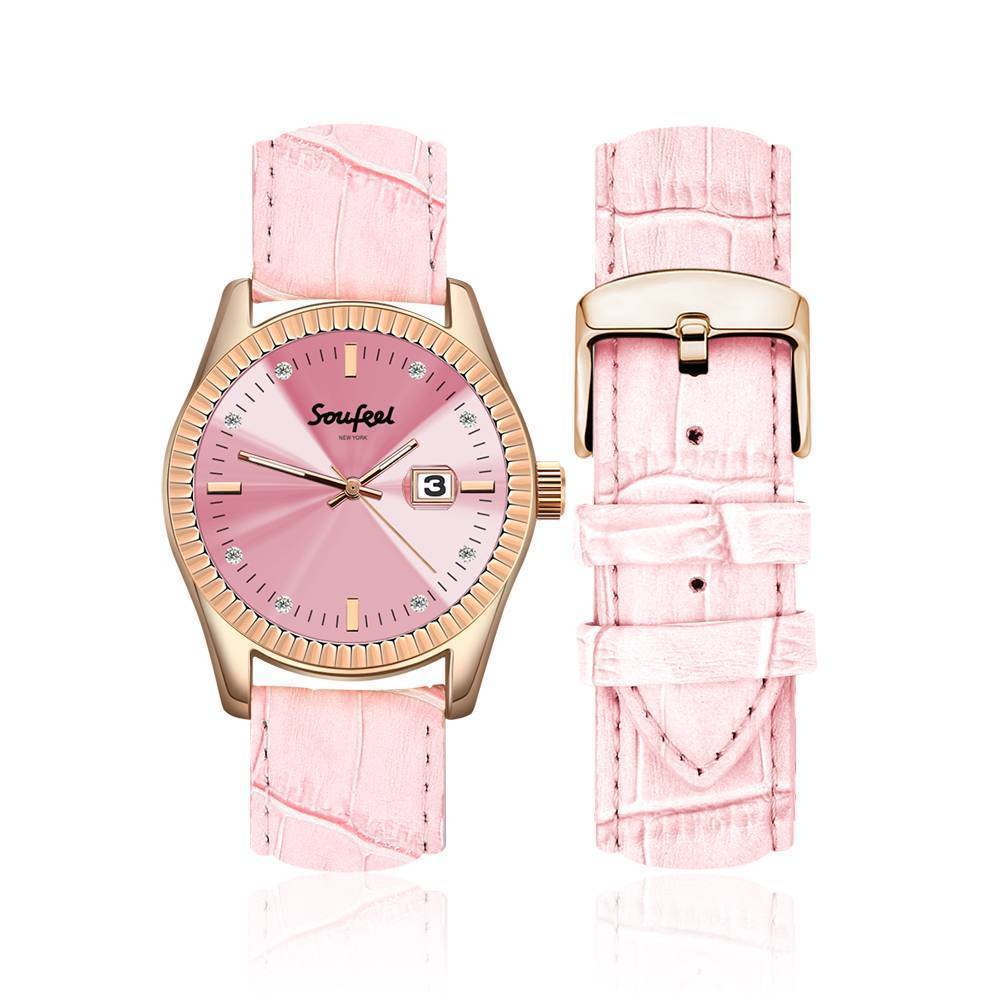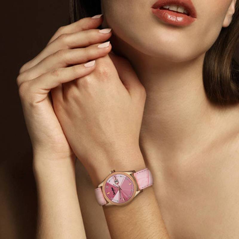 Women's Swarovski Crystal Watch Pink Leather Strap 38.5mm