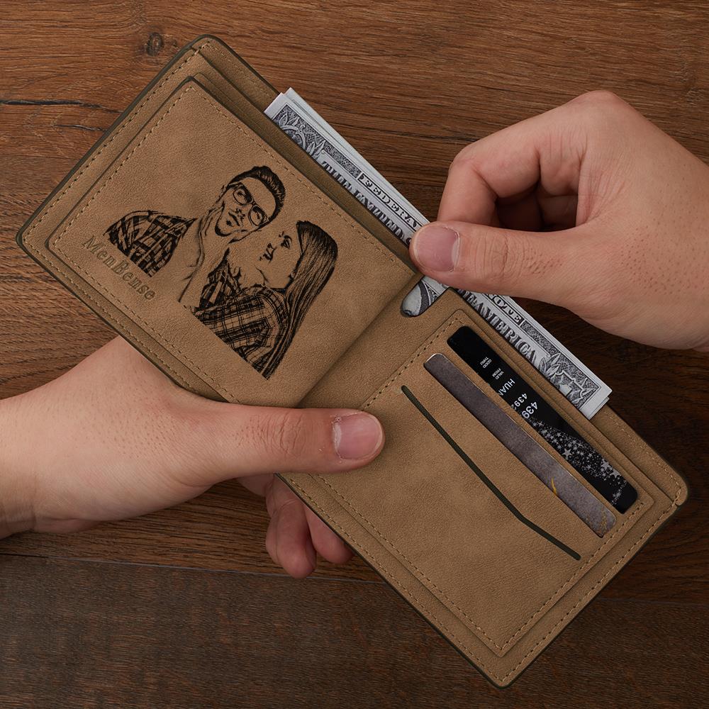 Gifts for Him Men's Custom Photo Engraved Wallet Bifold Short Wallet Wedding Gifts to Groom from Bride