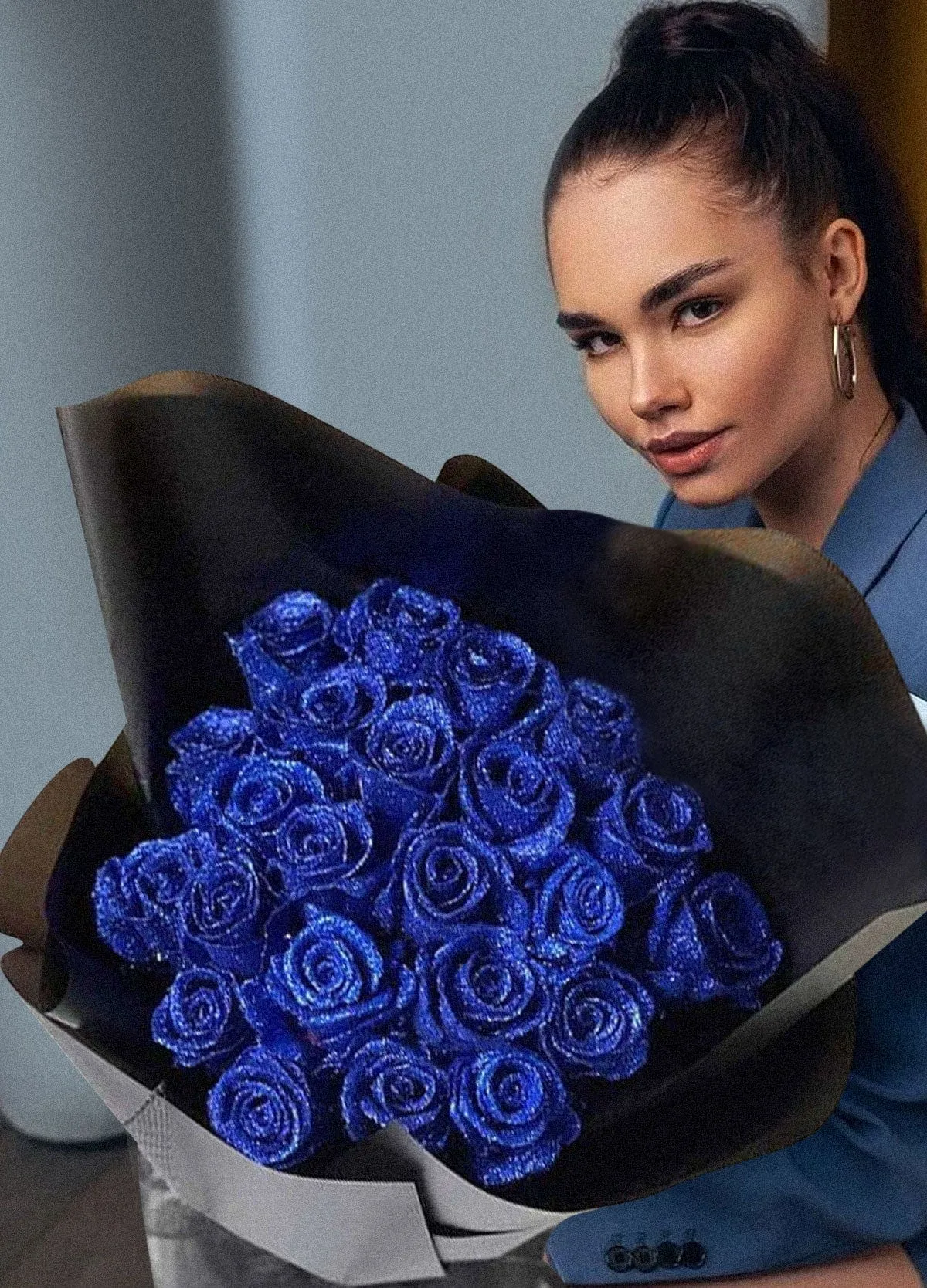 A rose that never fades, a love that never ends. Our blue artificial rose bouquet shimmer with gold, the shimmering effect will capture hearts and ignite a spark of love, becoming a deep reflection of your love for your beloved.
