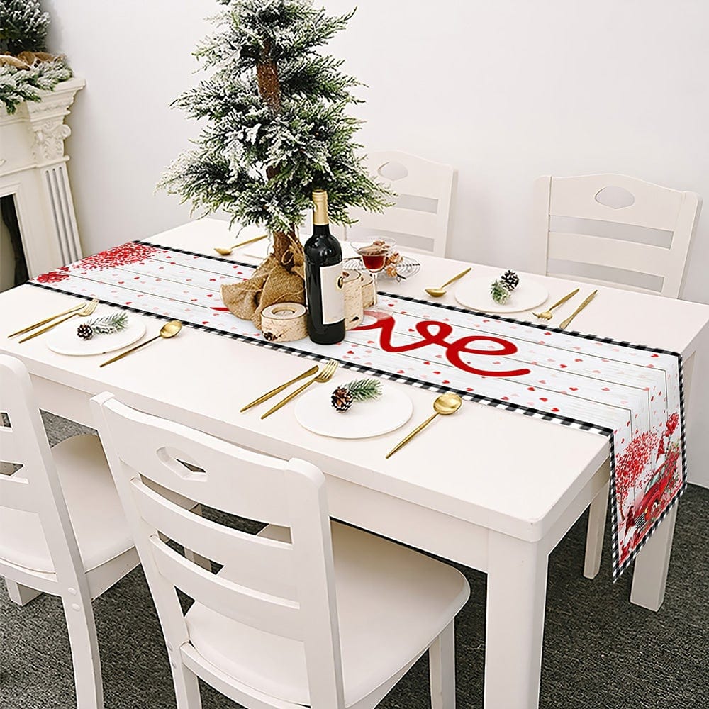 Create a festive table this Valentine's Day with this beautiful table runner. Perfect for setting Valentine's Day Dinner in the dining room or kitchen. It is the perfect addition to your Valentine's Day decor this season.