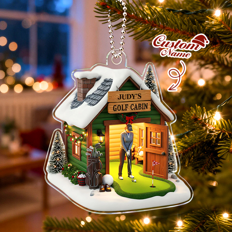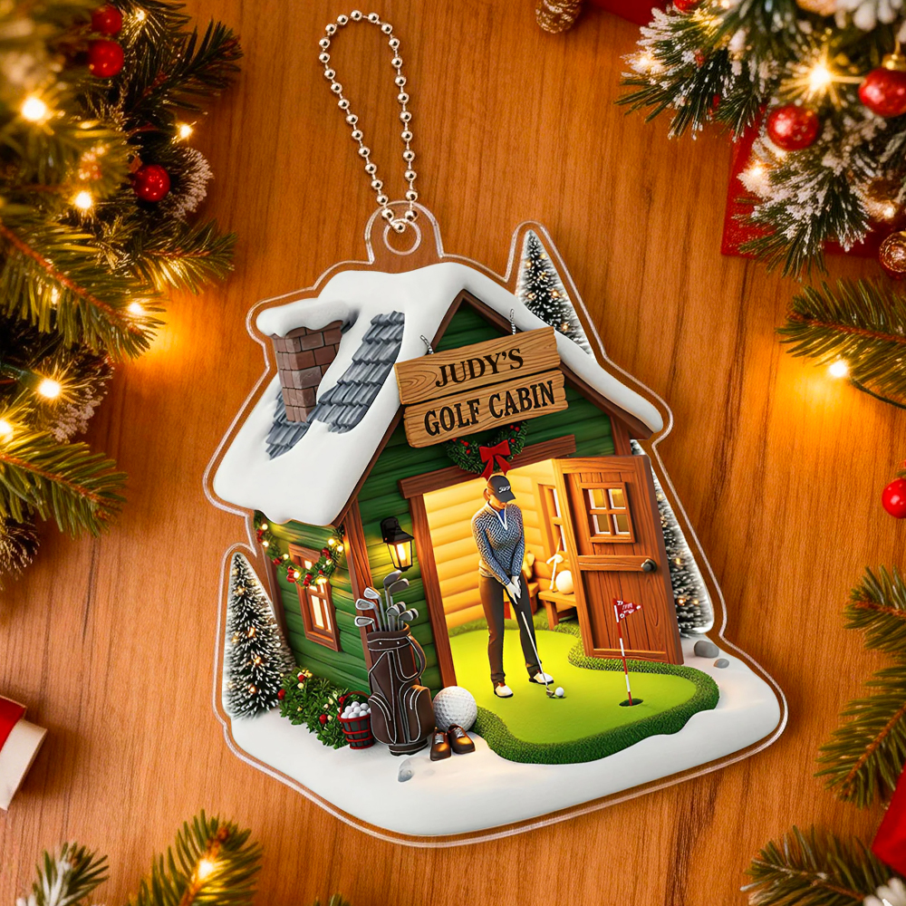 Golf Cabin Christmas Ornament - Personalized Gift For Golfers