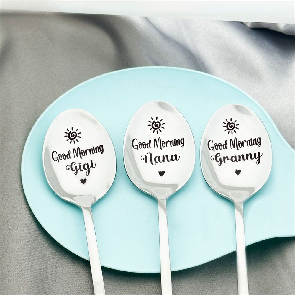 This stainless steel coffee spoon is the perfect gift for beloved Nana, Papa, or Mom. Its unique design features the phrase "Good Morning" to bring a smile every morning. Made of durable stainless steel, it's a practical and thoughtful addition to any coffee lover's collection.