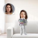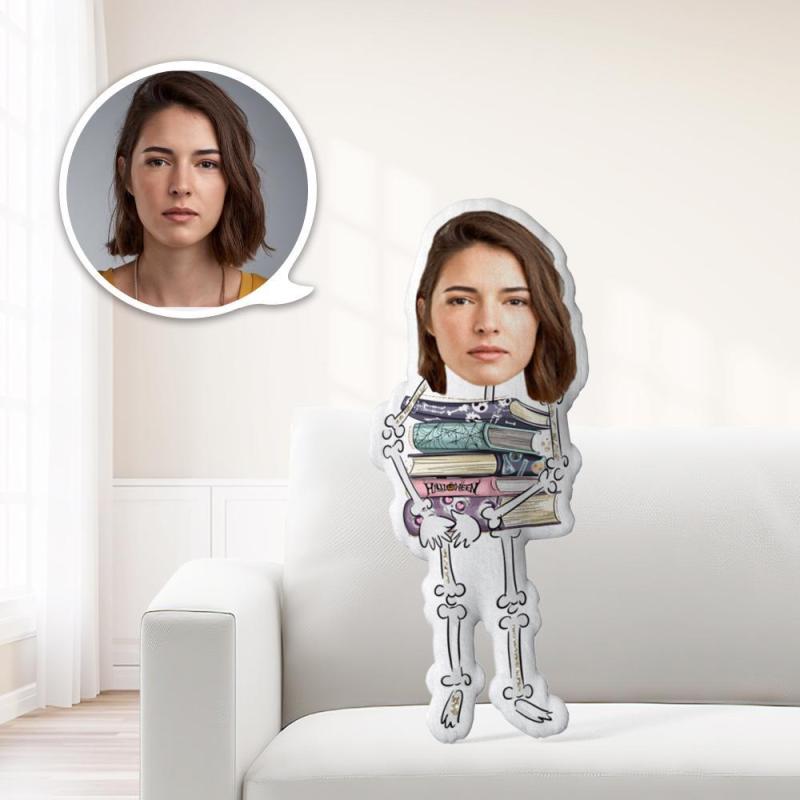 Halloween Face Pillow Custom Minime Pillow Halloween Gifts for Him Skeleton Holding A Book