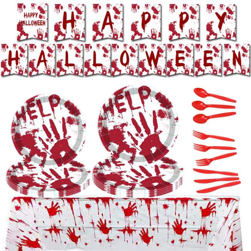 Halloween Party Bloody Hands Disposable Tableware Kits Halloween Party Decorations Supplies 82pcs