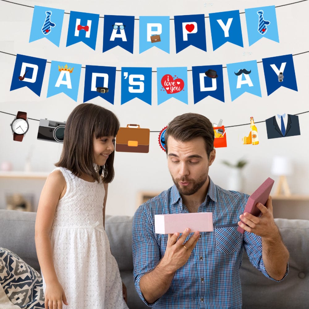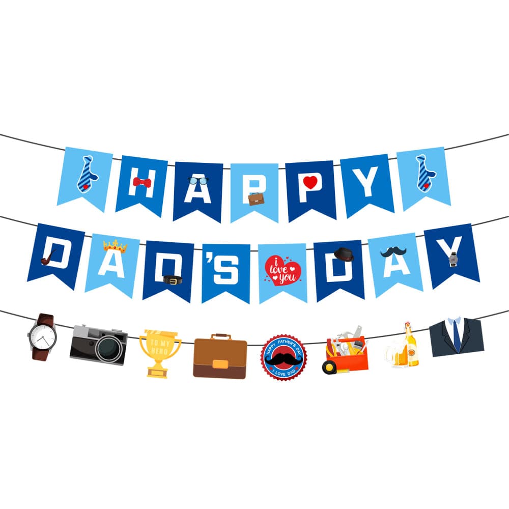 Made of cardboard, strong and durable, and can be reused. The string is long enough, you can hang the banner anywhere, and it is easy to disassemble and store, which can meet your various needs. The banner is a combination of some unique patterns, which fully express your love for dad. It is very suitable for your Father's Day decoration, easy to attract the attention of others, your father will love it!
