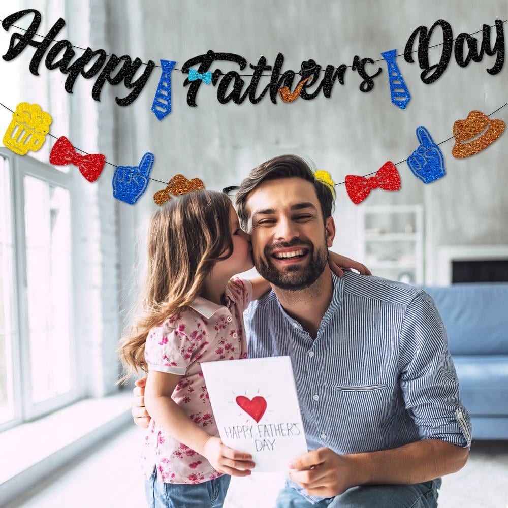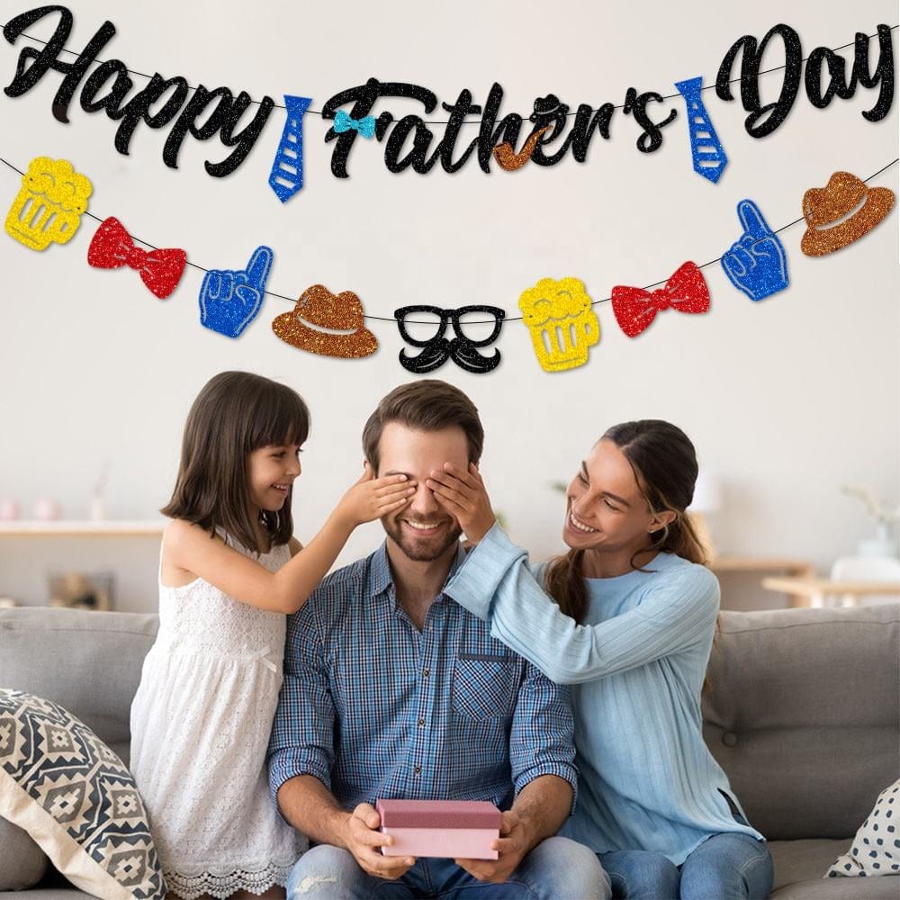 Made of cardboard, strong and durable, and can be reused. The string is long enough, you can hang the banner anywhere, and it is easy to disassemble and store, which can meet your various needs. The banner is a combination of some unique patterns, which fully express your love for dad. It is very suitable for your Father's Day decoration, easy to attract the attention of others, your father will love it!