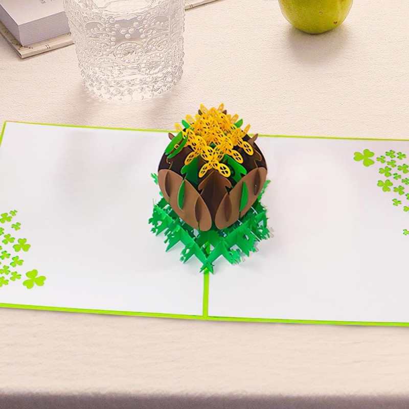 Share the Irish spirit and just a bit of the Irish luck with this fantastic Happy St. Patrick's Day pot of gold pop up greeting card. This card will be a treasure for many years to come. Perfect for any occasion, birthday, just because, thinking of you, thank you, the possibilities are endless and will bring a smile to anyone's day.