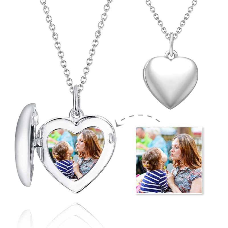 Heart Photo Locket Necklace With Name Embossed Platinum Plated