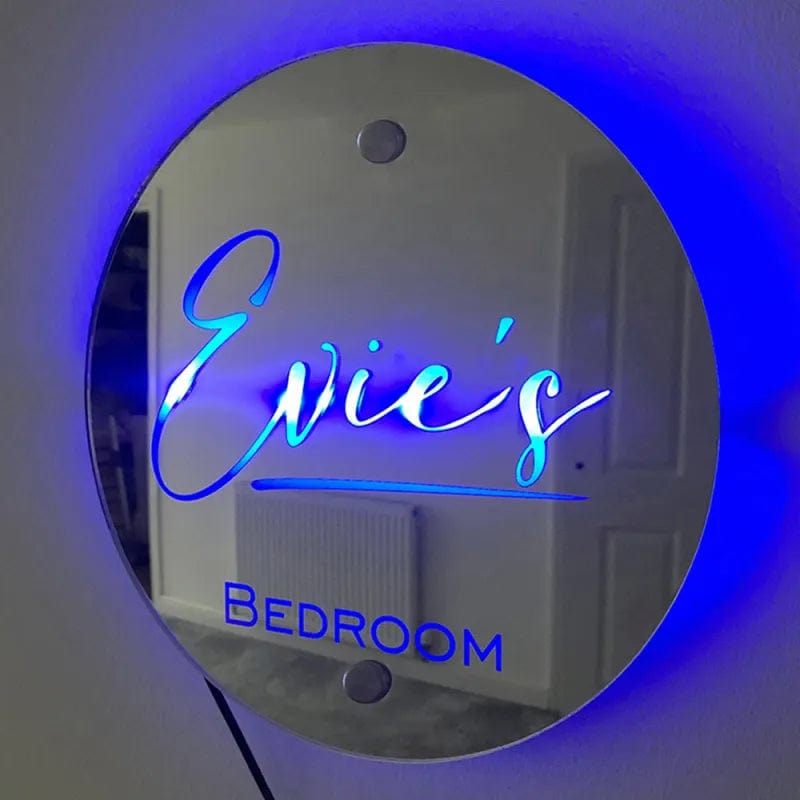 This super stylish personalised name mirror with LED lighting is a perfect and unique edition to any youngsters bedroom, they will love lighting up the personalised mirror and seeing their own name in lights.This eye-catching personalised name mirror makes the perfect gift and it will be cherished and loved for many years to come by the recipient.Includes remote control for LED lighting and chrome wall mounting stand offs.